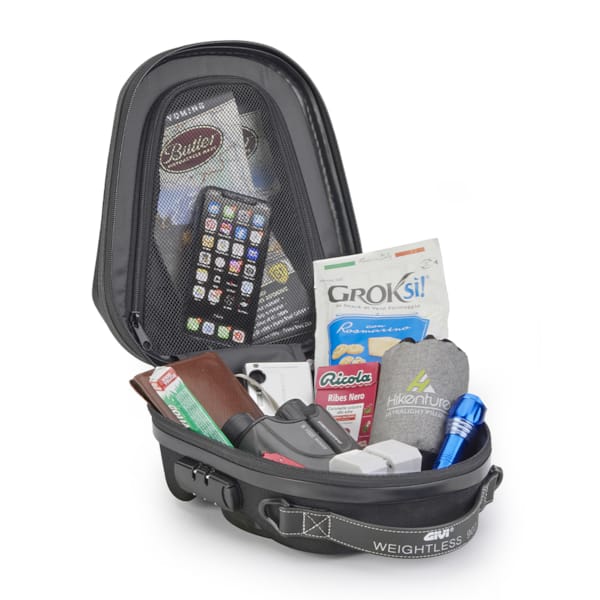 De WL902 TanklockED van GIVI is een semi-rigide tanktas met een opbergcapaciteit van 5 liter. De WL staat voor ‘weightless’, dus de ambities zijn duidelijk. Het volledig zwarte ontwerp en de fijne diamanttextuur geven deze tanktas een stijlvolle uitstraling.