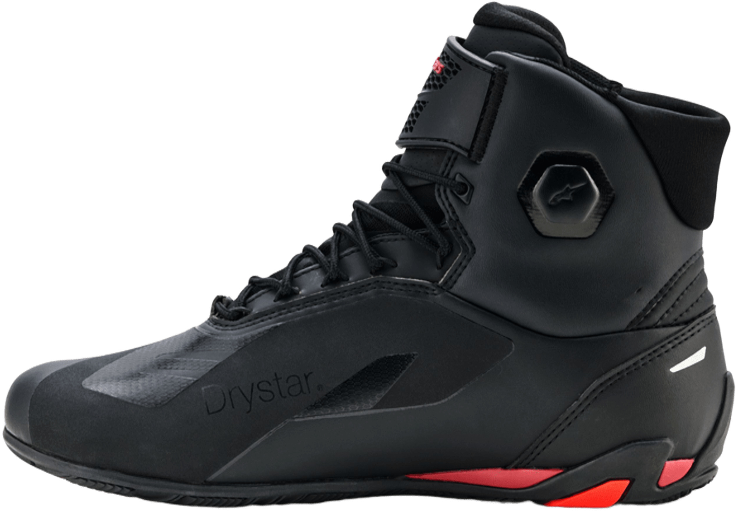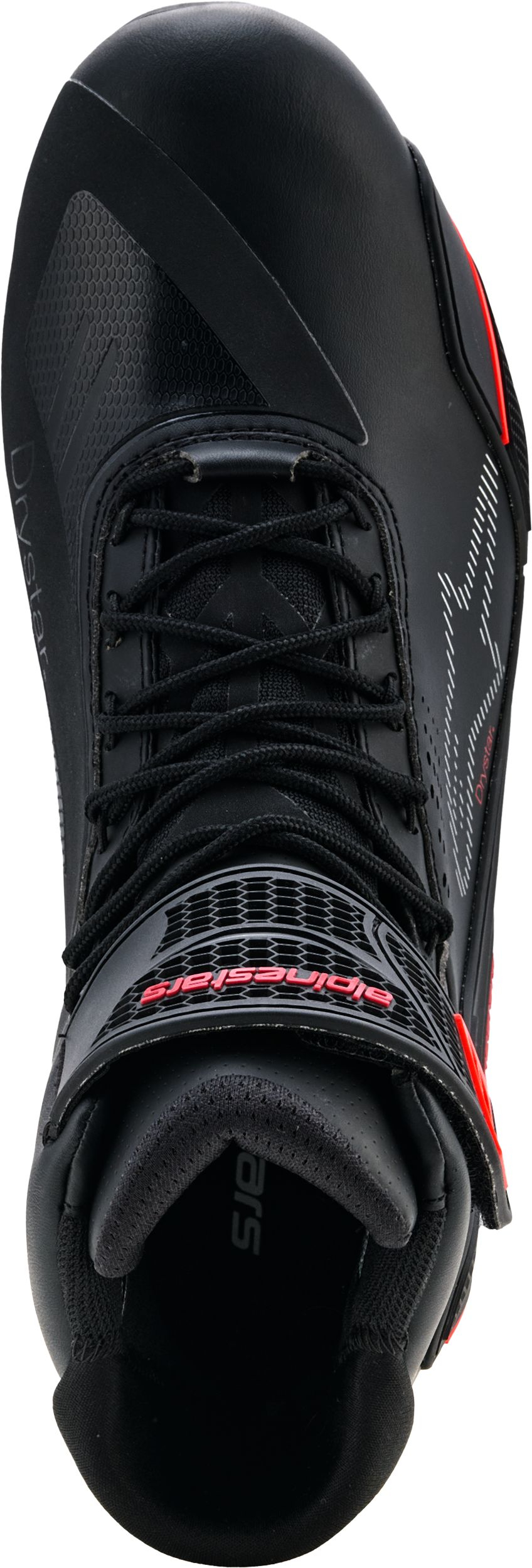 Wat maakt de Faster-4 Drystar anders dan gelijkaardige motorschoeisel? Het waterdichte en ademende Drystar-membraan is zowat het huislabel van Alpinestars voor alles wat waterdicht en ademend moet zijn. De meerlagige constructie is ontworpen voor vochtdoorlaatbaarheid, ademend vermogen en duurzaamheid, en biedt 100% waterdichte prestaties in alle weersomstandigheden. We zeggen het er wel graag bij: dit blijft qua formaat een hoge basketschoen, dus ‘waterdicht’ is relatief als het langs je benen en broek toch een weg naar binnen vindt.