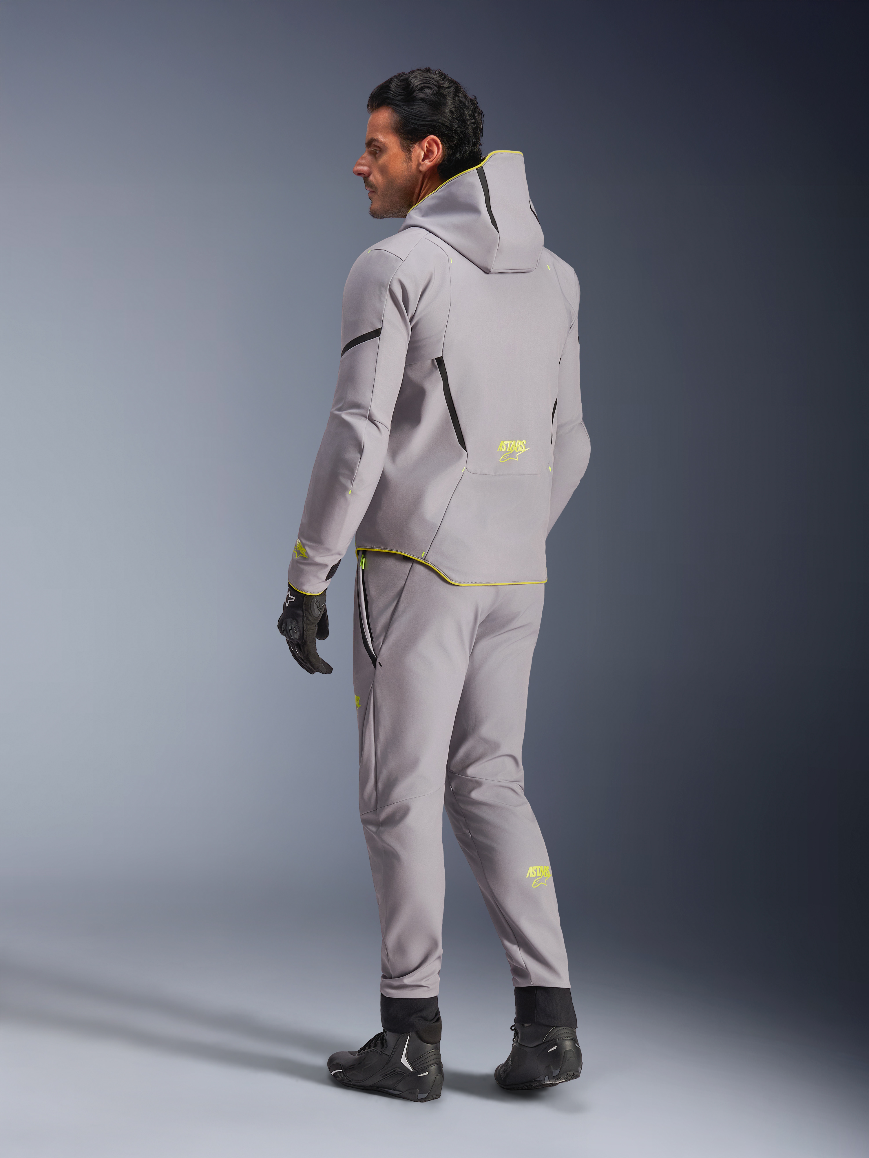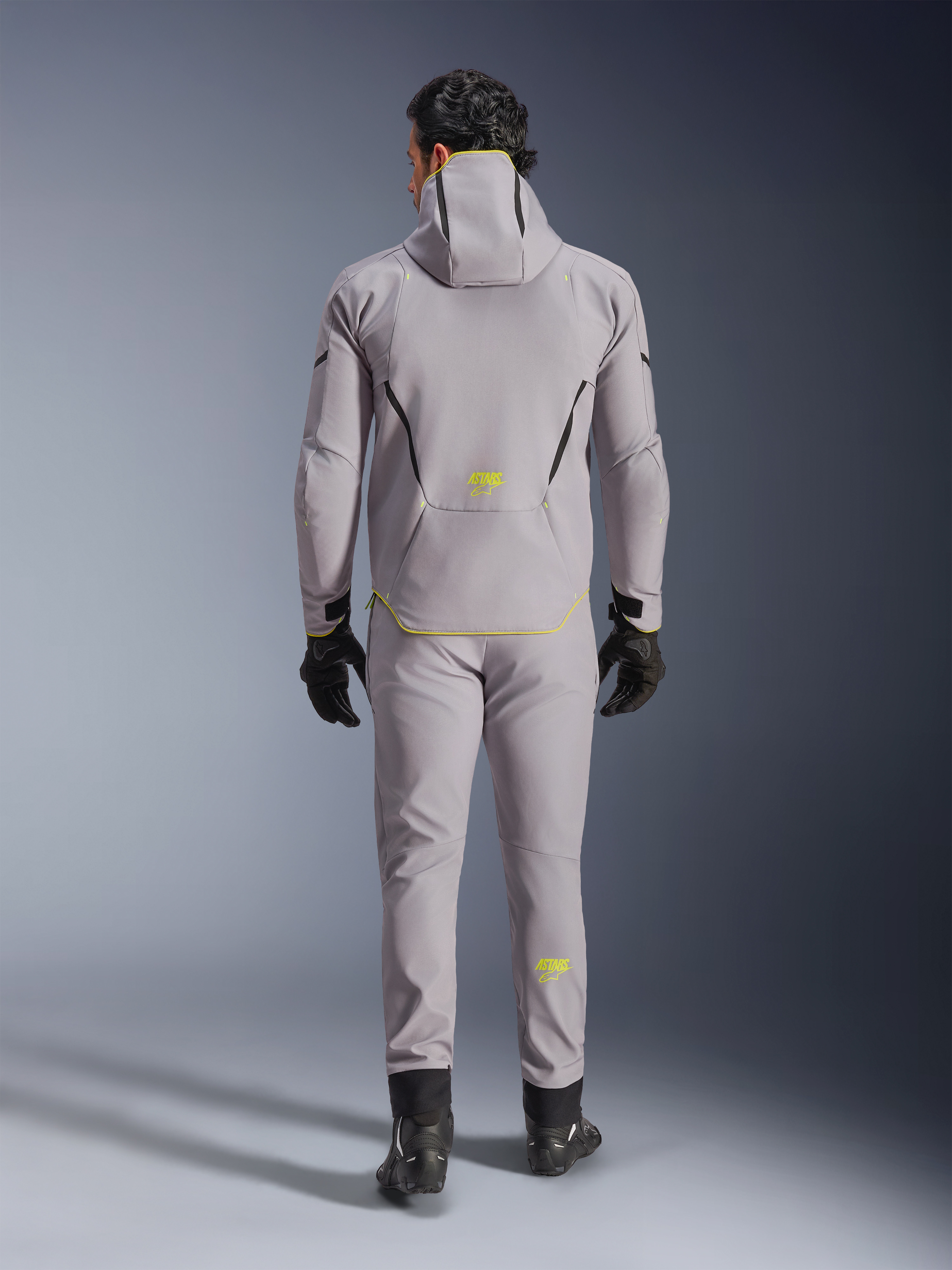 De buitenzijde bestaat uit een stretchende, zachte ‘outer-shell’ voor een goede pasvorm en nog betere flexibiliteit. Dit voelt eigenlijk niet als een motorjas. Het ontwerp, met de hoodie, onderstreept dat extra. Dit is een sportieve snit, strak en rechtlijnig, met overlap-ventilatieopeningen voor een goed ademend vermogen en voldoende klimaatcomfort.