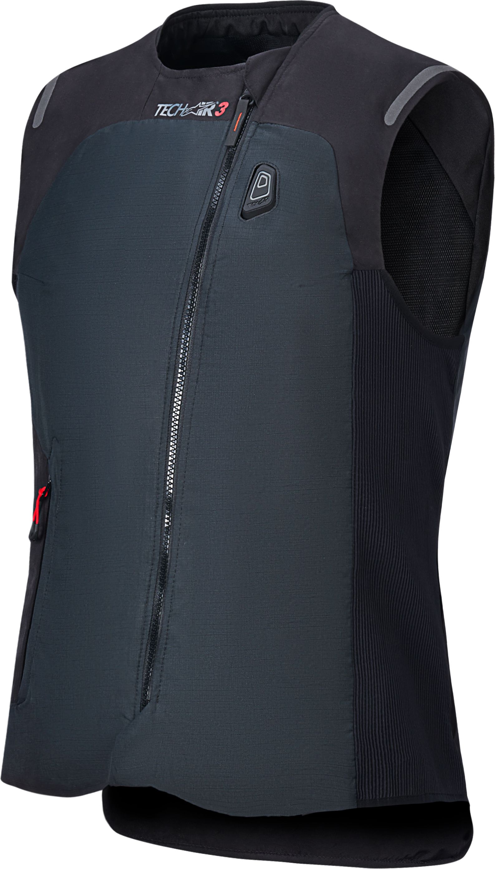 Updates, aanpassingen aan de algoritmes en eventueel nieuwe configuraties gebeuren via Bluetooth-verbinding (BLE 5.0) met de Tech-Air-app. Zo hou je alles in de gaten, wissel je tussen instellingen, volg je je ritten via MyRide en word je verwittigd van nieuwe updates. Via USB laad je het systeem op. De geïntegreerde, gecertificeerde lithium-ion batterij gaat tot 40 uur mee en opladen duurt ongeveer 4 uur. De ECU is getest en CE-gecertificeerd en functioneert tussen -20°C en +40°C. Het vest is wasbaar.