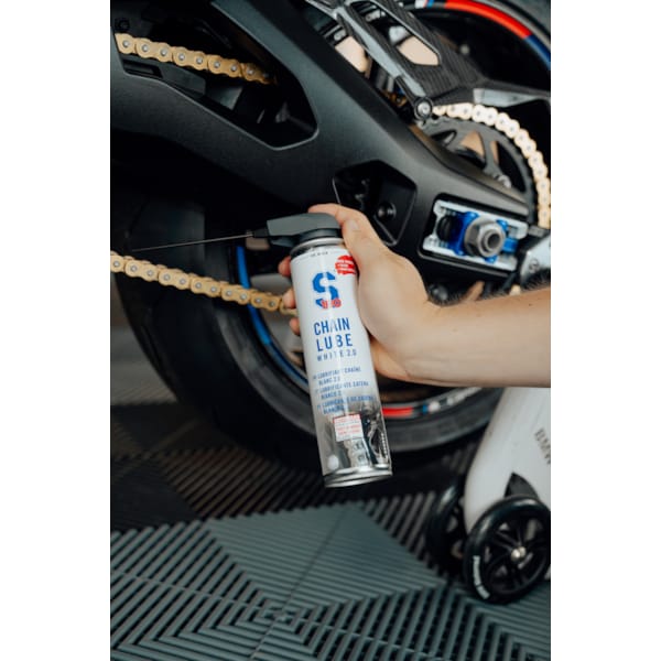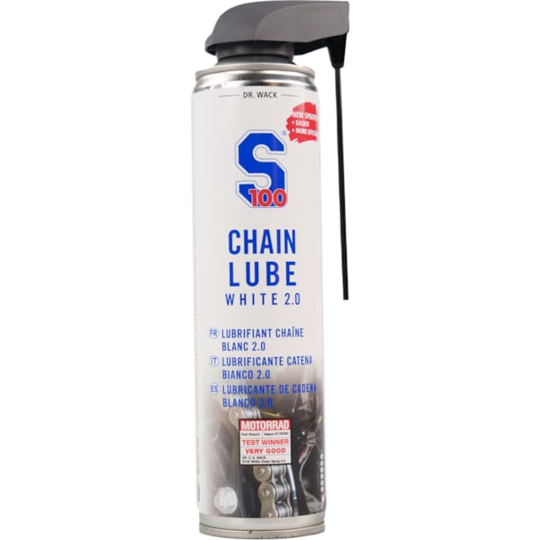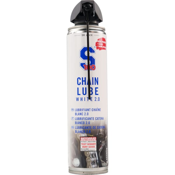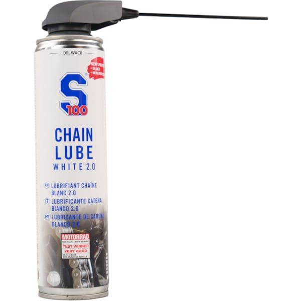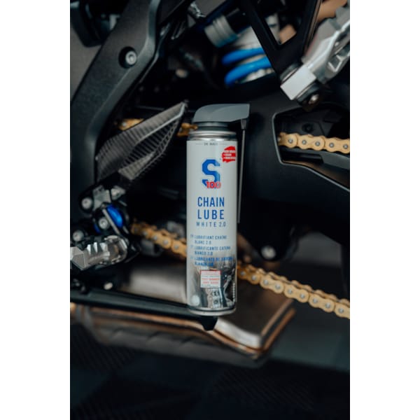 Om een motorfietsketting in topconditie te houden en een lange levensduur te garanderen, dient ze regelmatig schoongemaakt en gesmeerd te worden. De S100 kettingspray 2.0 is een nieuwe, verbeterde formule. Tot vier keer beter op het gebied van corrosiebescherming en actieve bescherming tegen roest. Met een extra hechtversterker aan boord kan je ruimere smeerintervallen hanteren en je hoeft ook niet zo nodig je kledij te wassen na de eerste rit, want dit kettingvet blijft hangen waar het hoort te hangen: aan de ketting. S100 kettingspray 2.0 is bovendien weer- en waterbestendig. Zoals je dat mag verwachten van kettingspray die in het oog van de storm hangt natuurlijk.