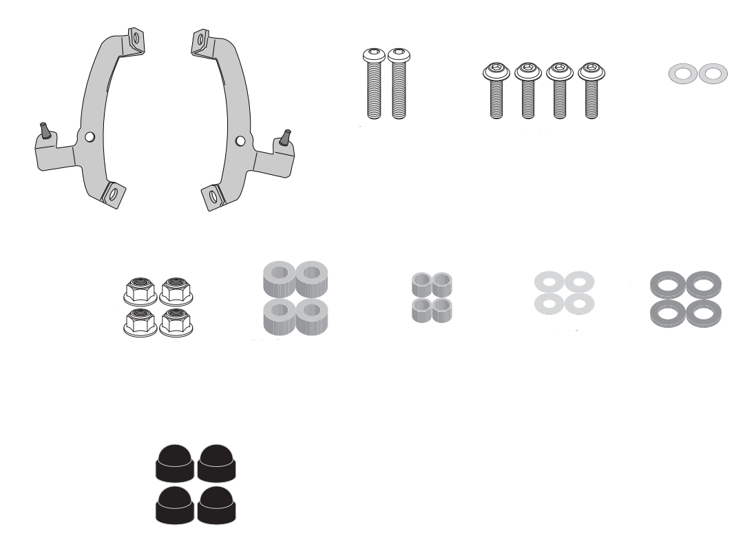 Deze Givi referentie is enkel en alleen een montagekit. Deze montagekit is niet universeel en enkel geschikt voor de montage van een specifiek windscherm op een specifiek voertuig.