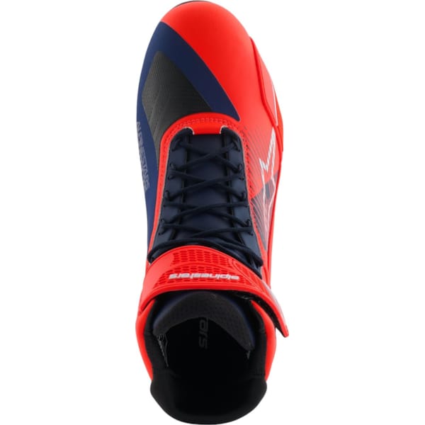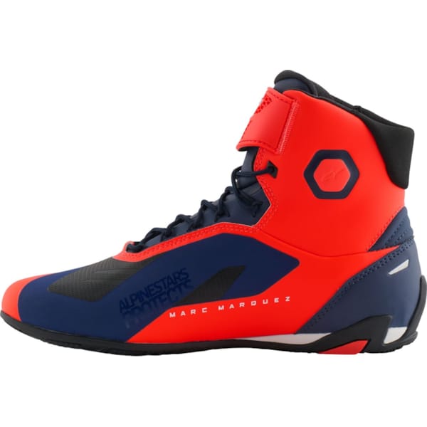 De gelaste, geavanceerde microvezelpanelen die de buitenzijde vormen, koppelen meteen het uitzicht aan prestaties. Een uitsparing (in zacht textiel) ter hoogte van de achillespees voor beweeglijkheid. Ondanks dat, veel ondersteuning en padding op de enkel. Een gedetailleerde, niet al te uitgesproken TPR-teenslider. Een nieuw ontworpen, uitwendige TPR-hielslider. De asymmetrische teen die – ook zonder uitgesproken schakelversteviging – toelaat stevig doorheen de versnellingen te gaan. De 3D meshvoering die voor een hoog ademend vermogen zorgt, maar ook voor een licht gewicht. De anti-slip microsuède op de hiel, en de vulling rond de enkel en in de tong van de motorschoen mogen we niet vergeten.