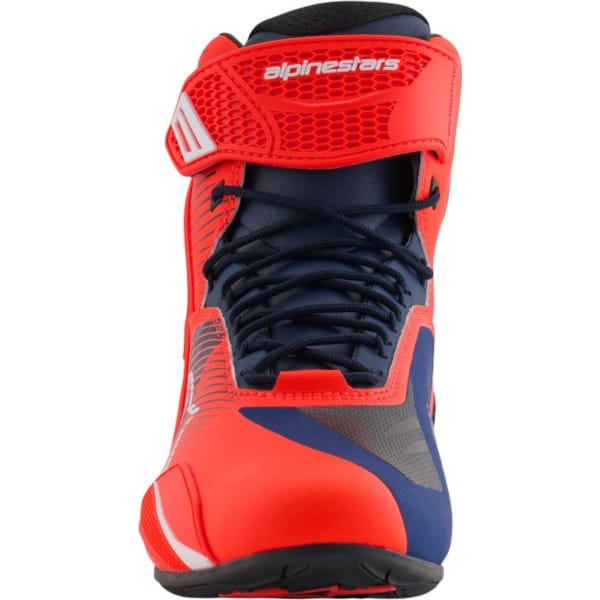 Een traditioneel vetersysteem zorgt voor een veilige, comfortabele en gemakkelijke sluiting. De veterlussen scherm je af door middel van de (zijwaartse) velcroband met TPR. De combinatie laat je toe de motorschoen perfect op maat af te stellen.