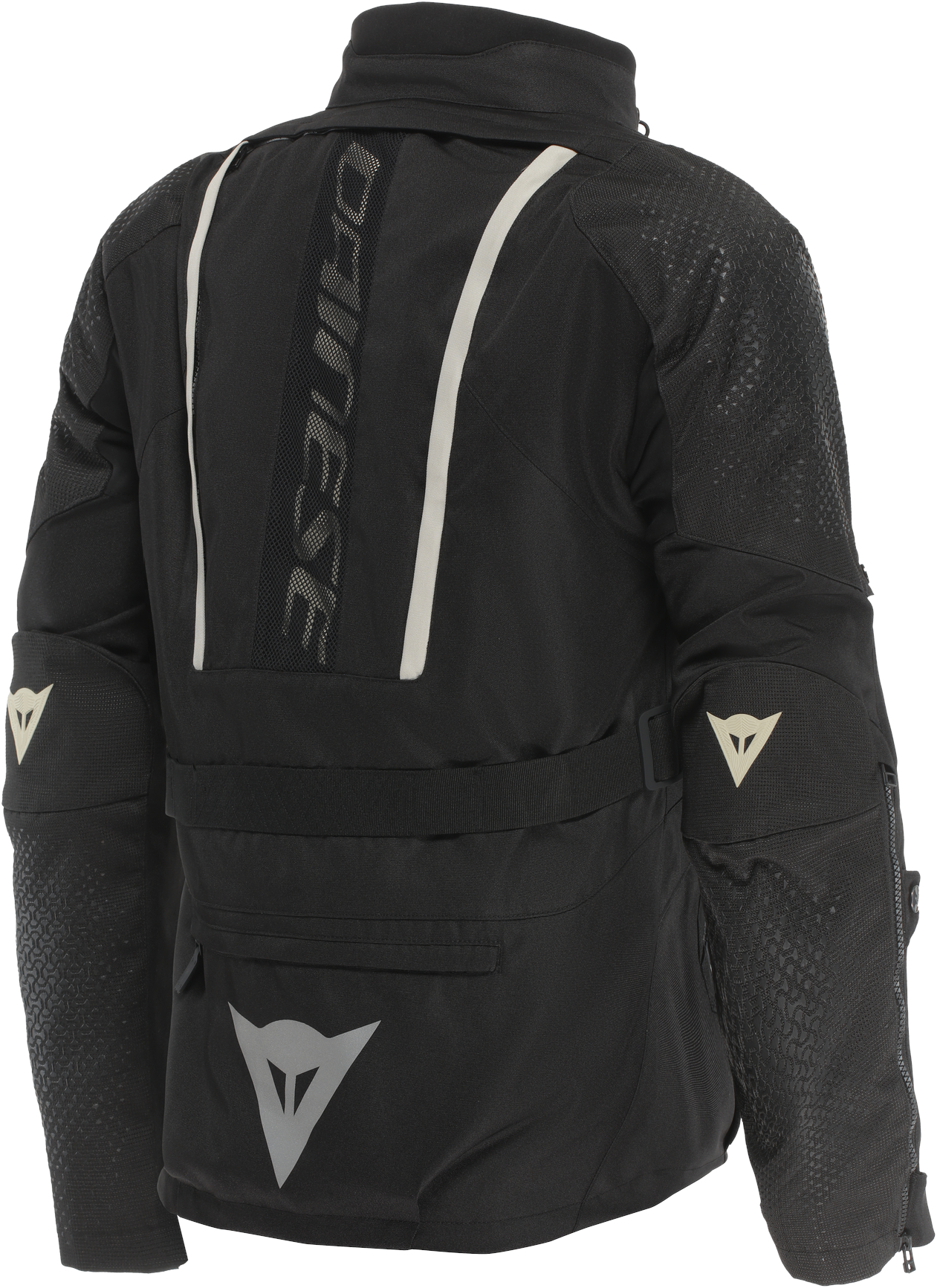Een lange verbindingsrits koppelt de motorjas aan de bijpassende Gullfoss D-Dry,motorbroek. Je kan natuurlijk ook andere Dainese-motorbroeken combineren, maar voor adventure-ritten is een complete outfit logischer.