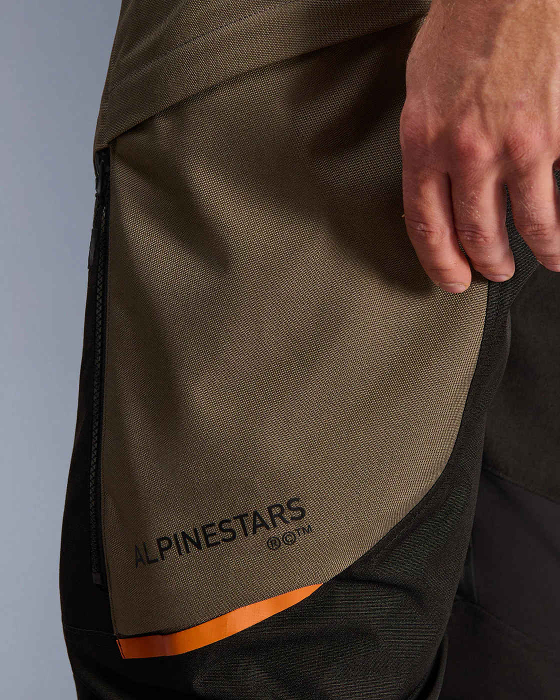 De buitenschaal combineert ripstop met 600D polyfabric. Dobby-weefsel aan de binnenzijde van de knieën biedt extra slijtvastheid waar je benen de tank raken. Stretch softshell-panelen achter de knieën en ter hoogte van het zitvlak zorgen voor bewegingsvrijheid in de rijpositie.