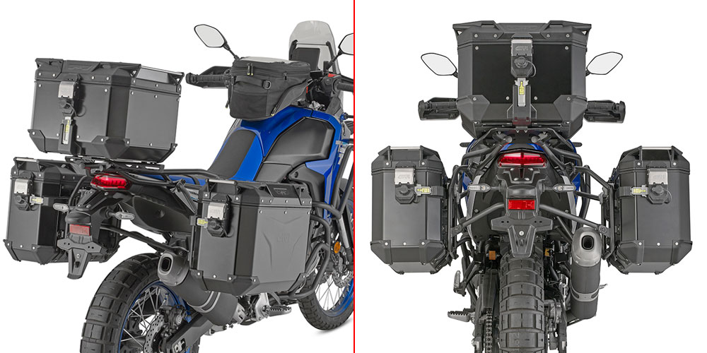 Ooit stimuleerde GIVI het knutsel- en puzzelgevoel met allerhande kits, opzetstukken, adapters en verschillende formaten. Deze zijkofferbeugel pas in de recentere, uniforme aanpak, waarbij de complete set kant- en klaar wordt aangeleverd.