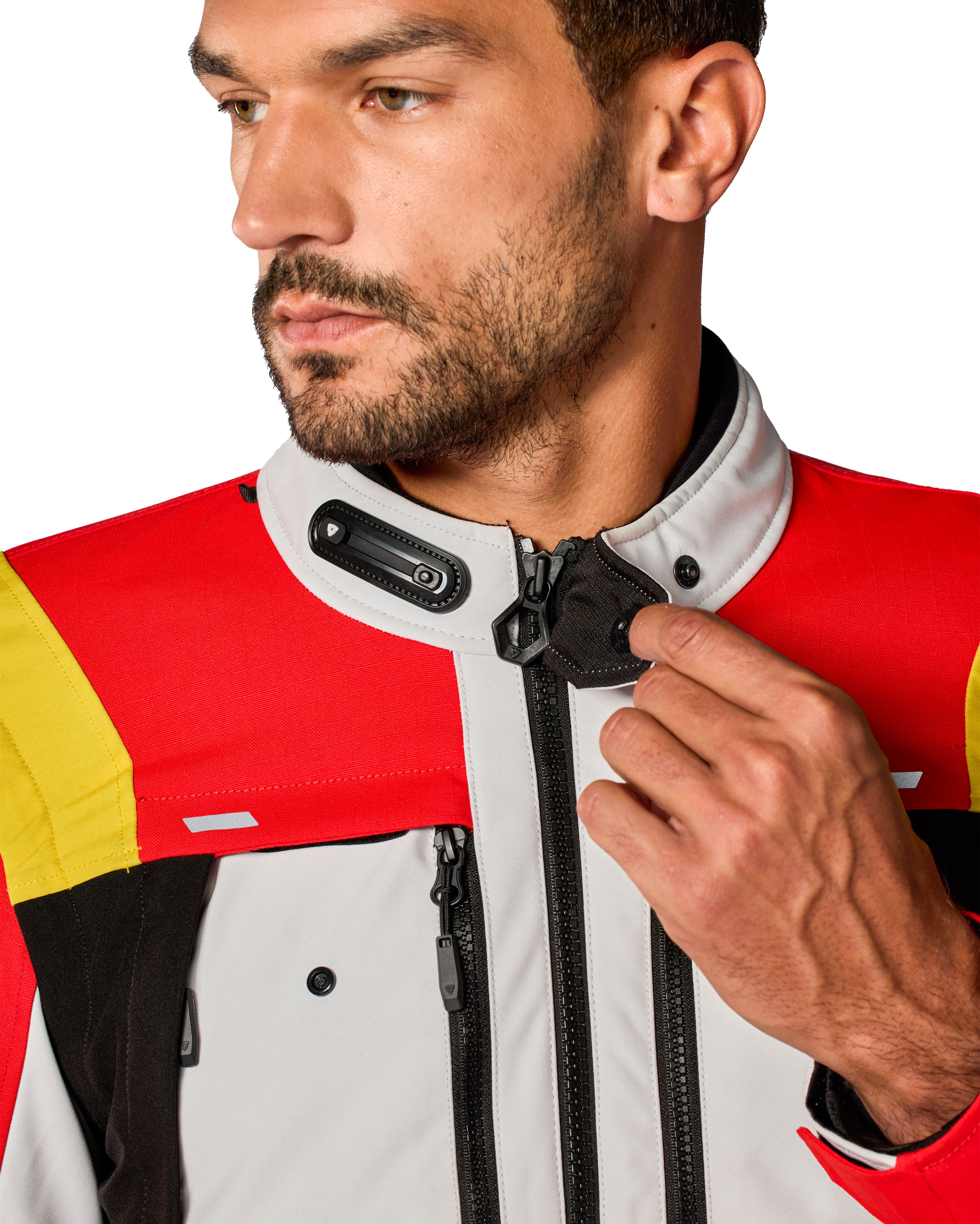 Impactbescherming komt standaard in de vorm van SEEFLEX level 2 CE-protectoren op schouders en ellebogen. Die laatste zijn in hoogte verstelbaar. De motorjas is voorbereid om een SEESOFT CE-level 2 rugprotector en een SEESOFT CE-level 1 borstprotector te installeren. Reflectiemateriaal is subtiel maar effectief aanwezig.