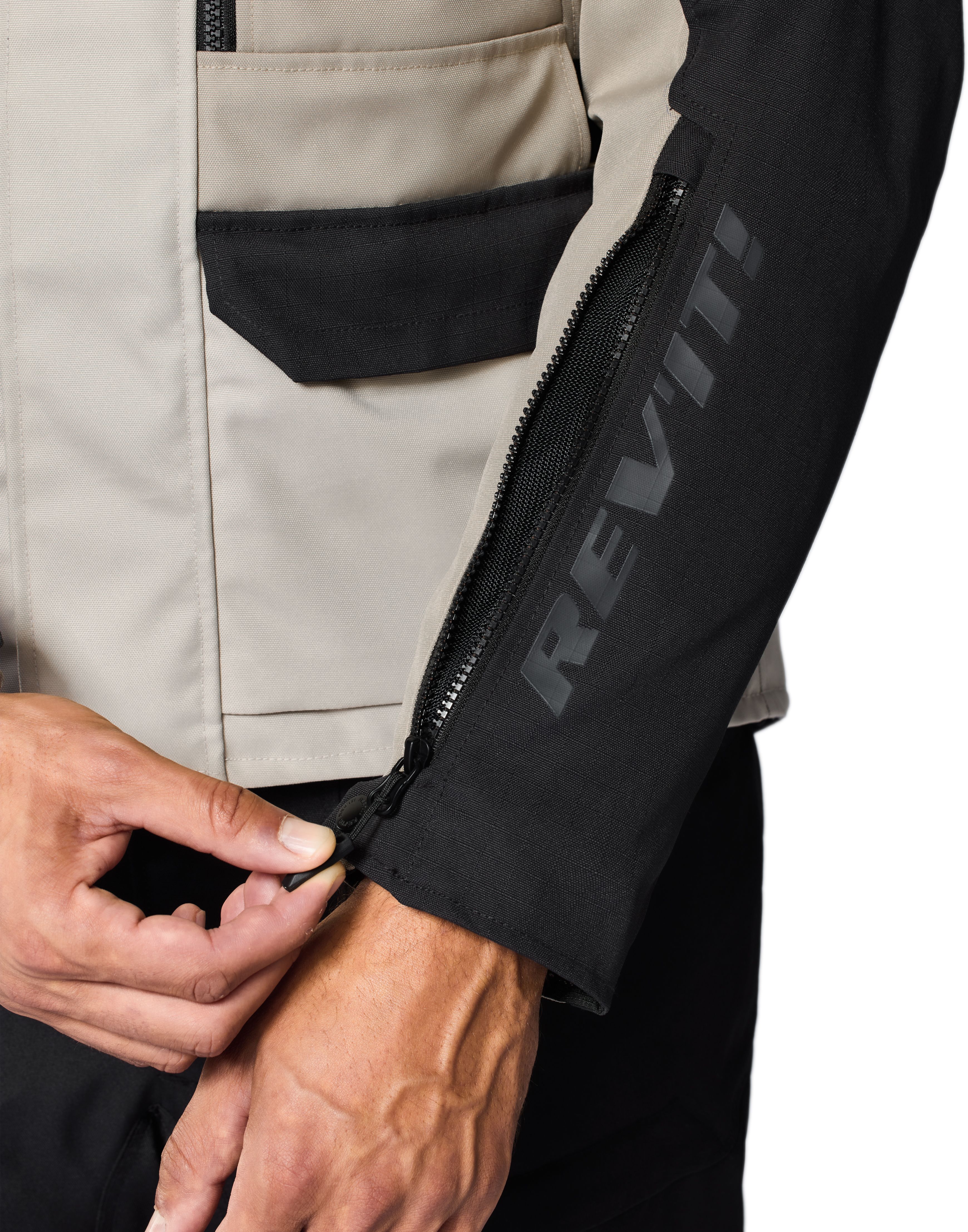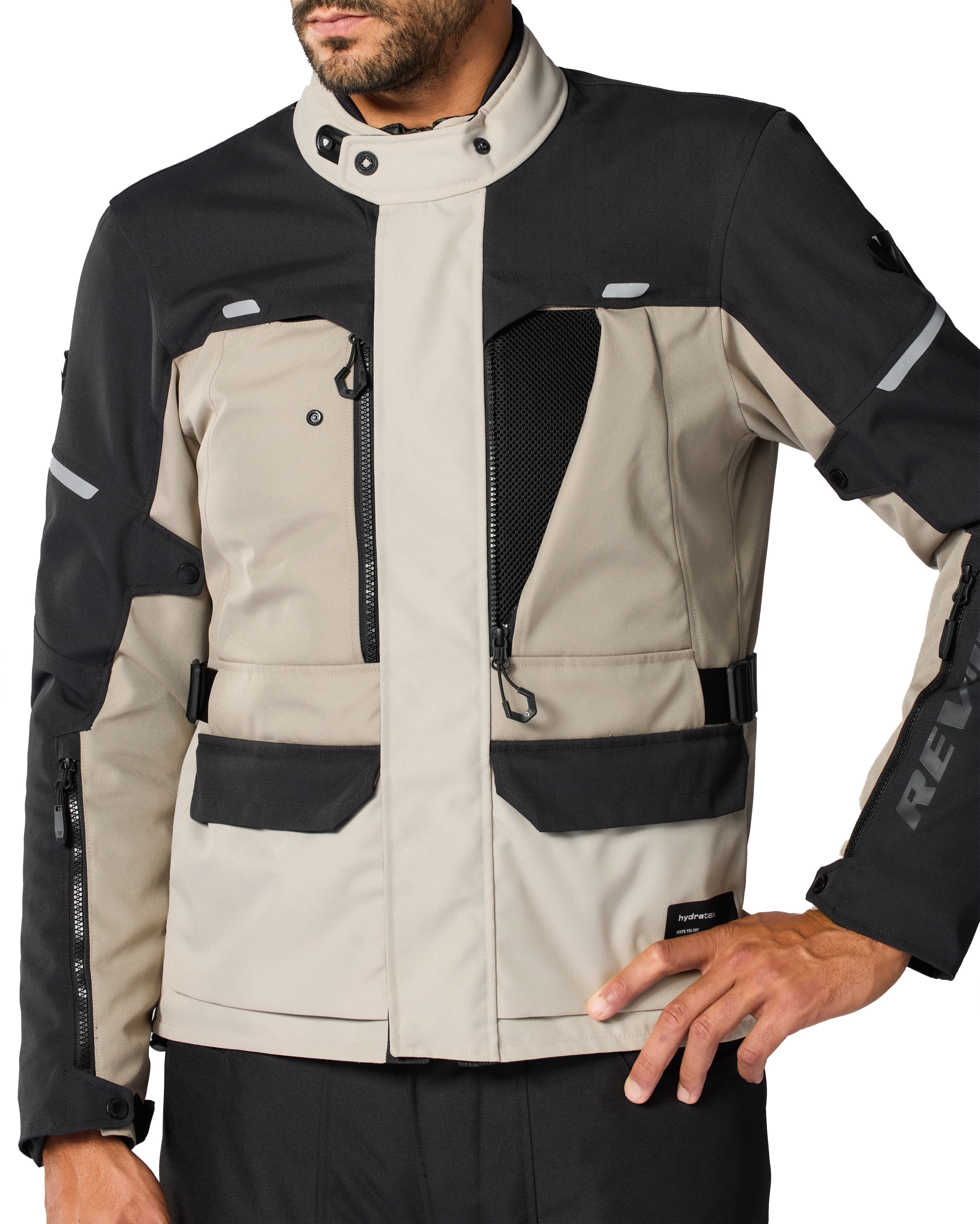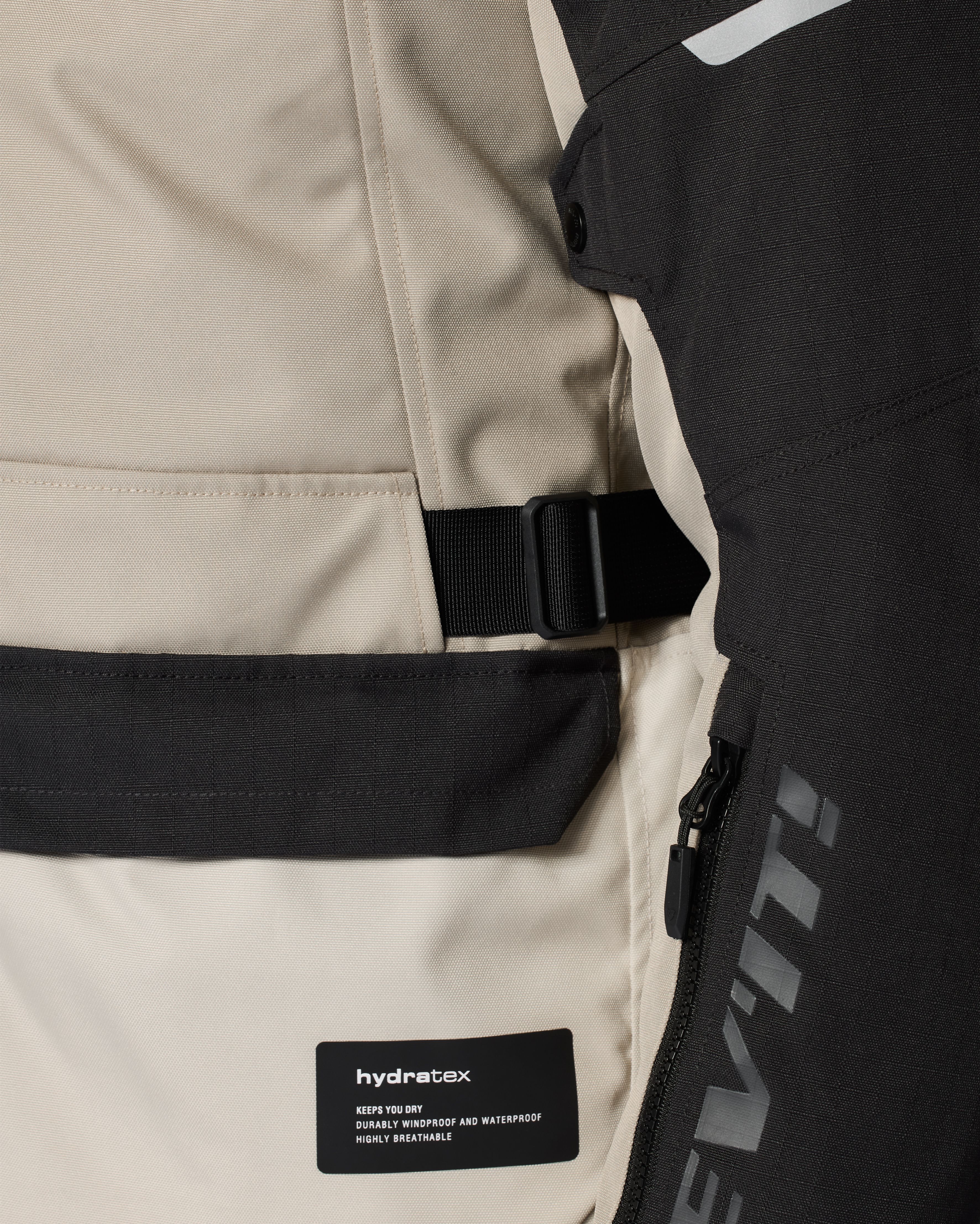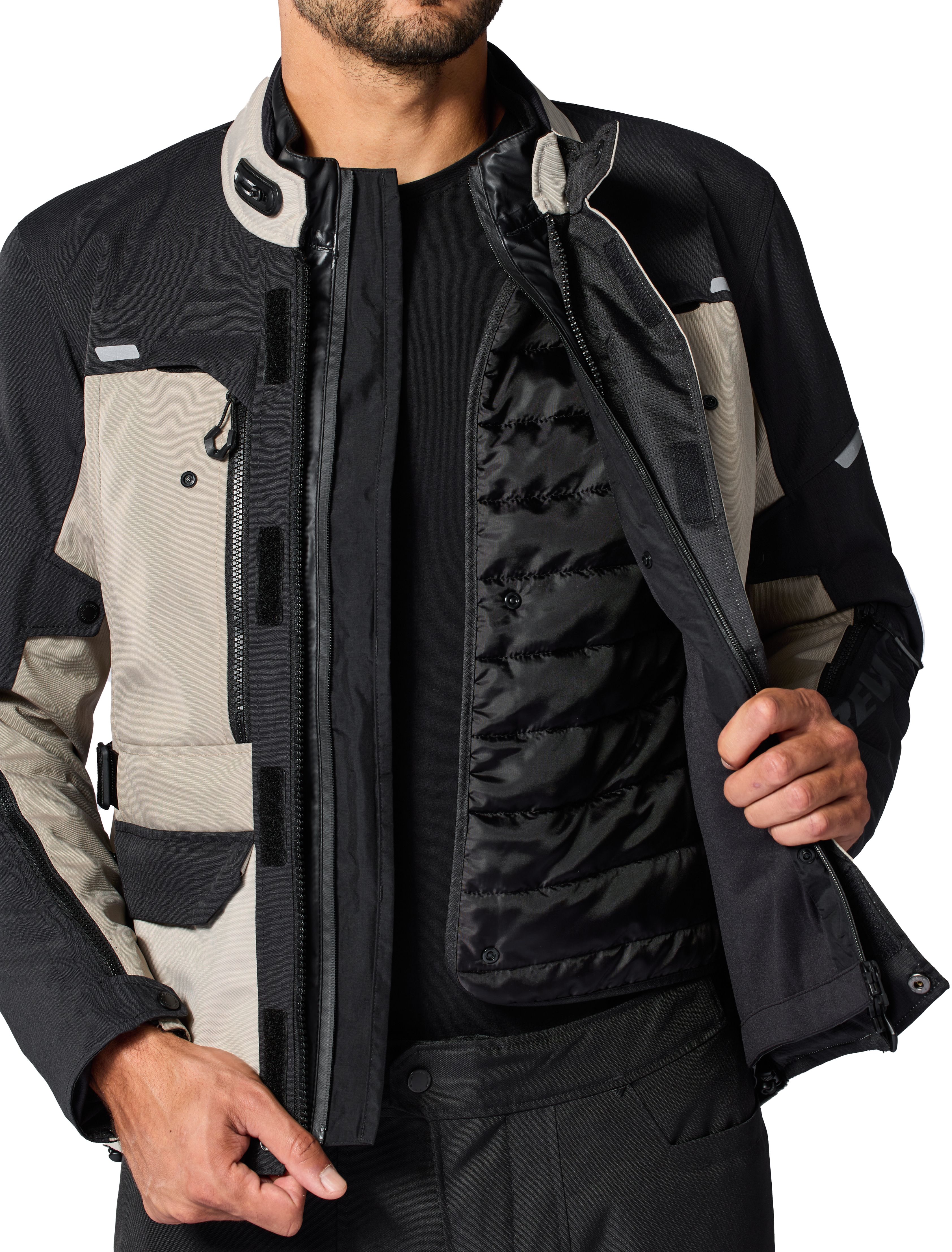 De Nederlandse motorkledingproducent is fan van strak op en rond het lichaam aansluitende motorkleding. Het resulteert bij zowat alle REV'IT!-motorjassen in heel wat extra individuele aanpassingsmogelijkheden. Een geïntegreerde tailleriem met gesp zorgt dat de motorjas perfect gecentreerd blijft, ook onderweg. Daarnaast zijn er drukknopen aan de armen, velcrostroken aan de mouwuiteinden en de flexisnap-kraag die je in een beweging open en dicht klikt.