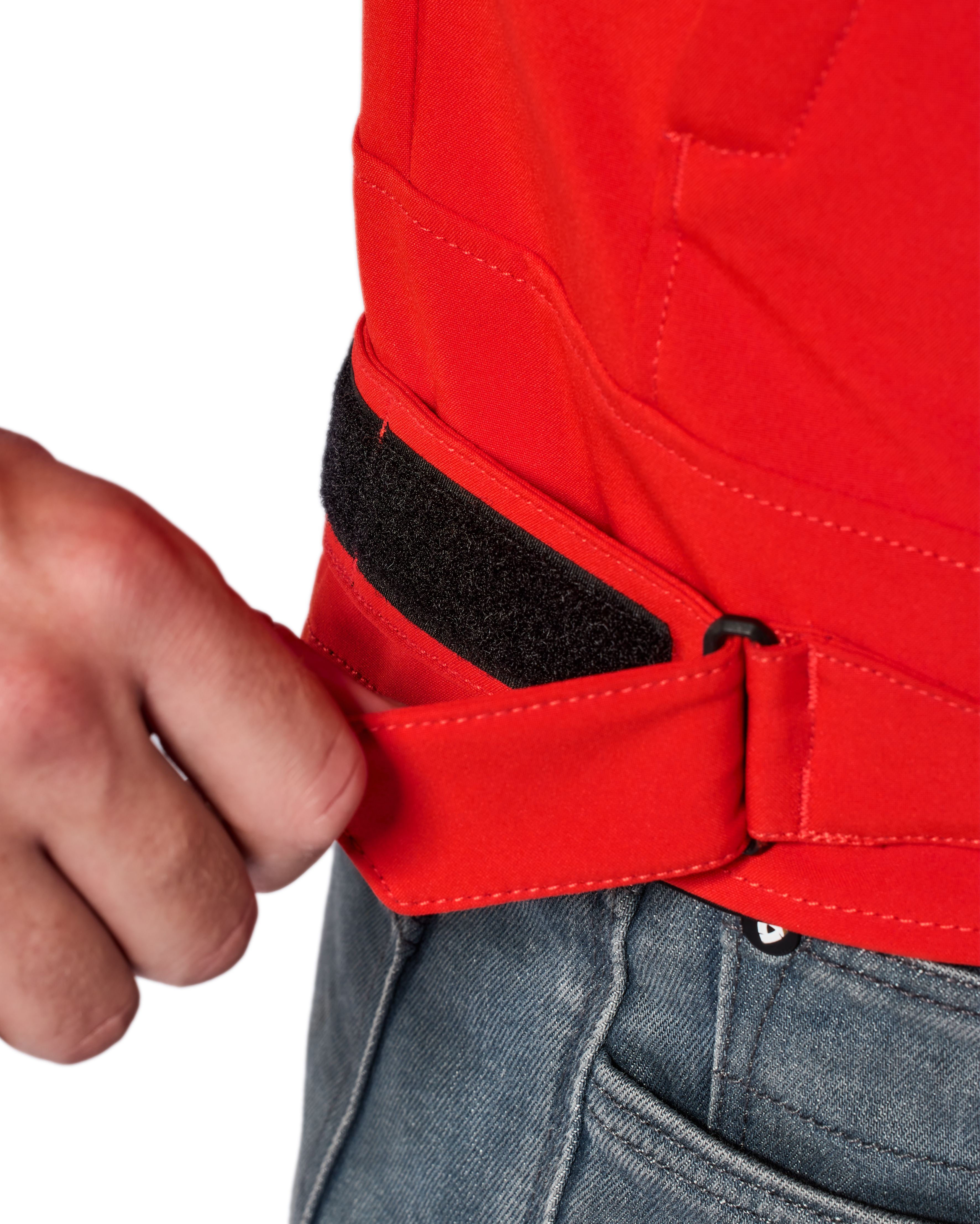 Er is een korte verbindingsrits voorzien, wat de combinatie met de Factor 5 H2O-motorbroek of een motorjeansbroek toelaat.