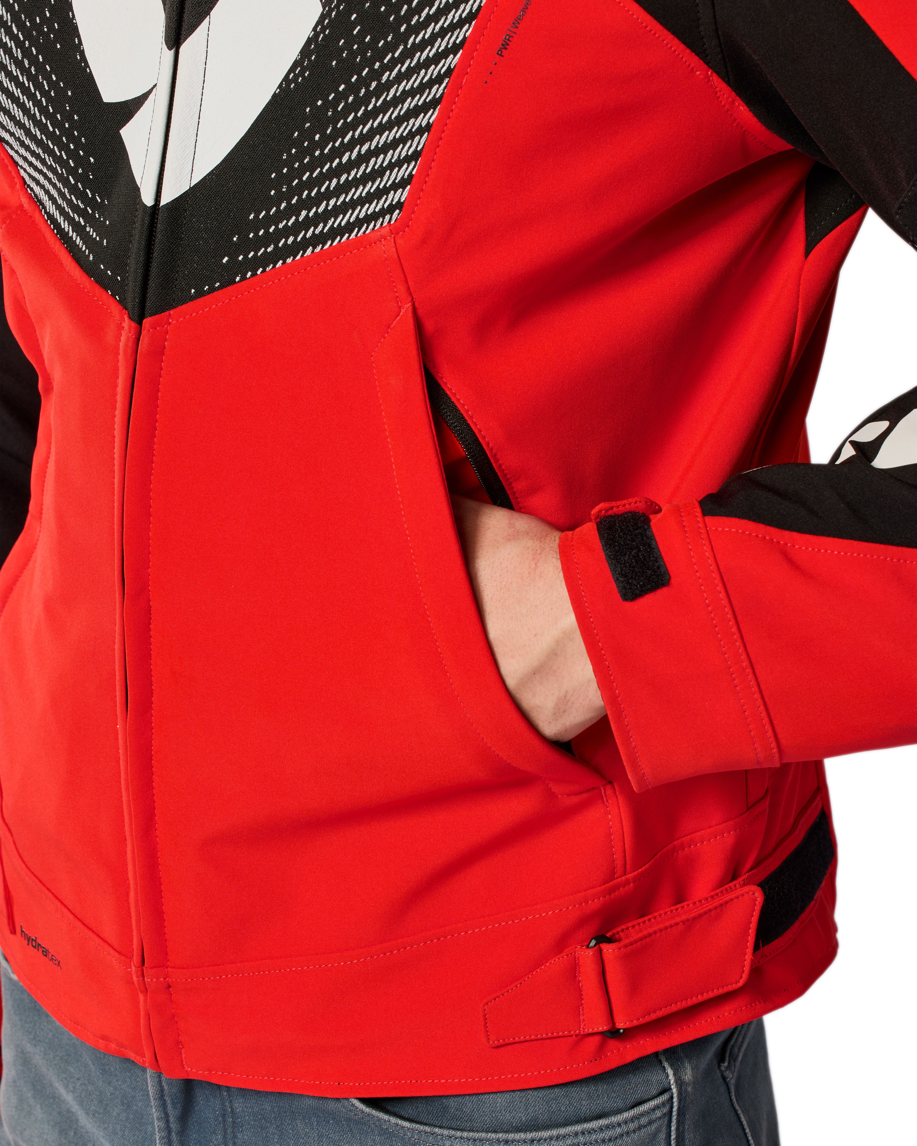 De snit is duidelijk sportief en toch vormt de Hyperspeed 3 H2O-motorjas geen race-harnas. Hij is voorgevormd genoeg om bij een sportieve rijhouding te passen, en tegelijk niet zo strak dat je er niet comfortabel in kan bewegen. Verstelmogelijkheden op de gebruikelijke plaatsen, een wind & water catcher achter de centrale rits en voldoende zakken voor het essentiële maken het plaatje compleet.