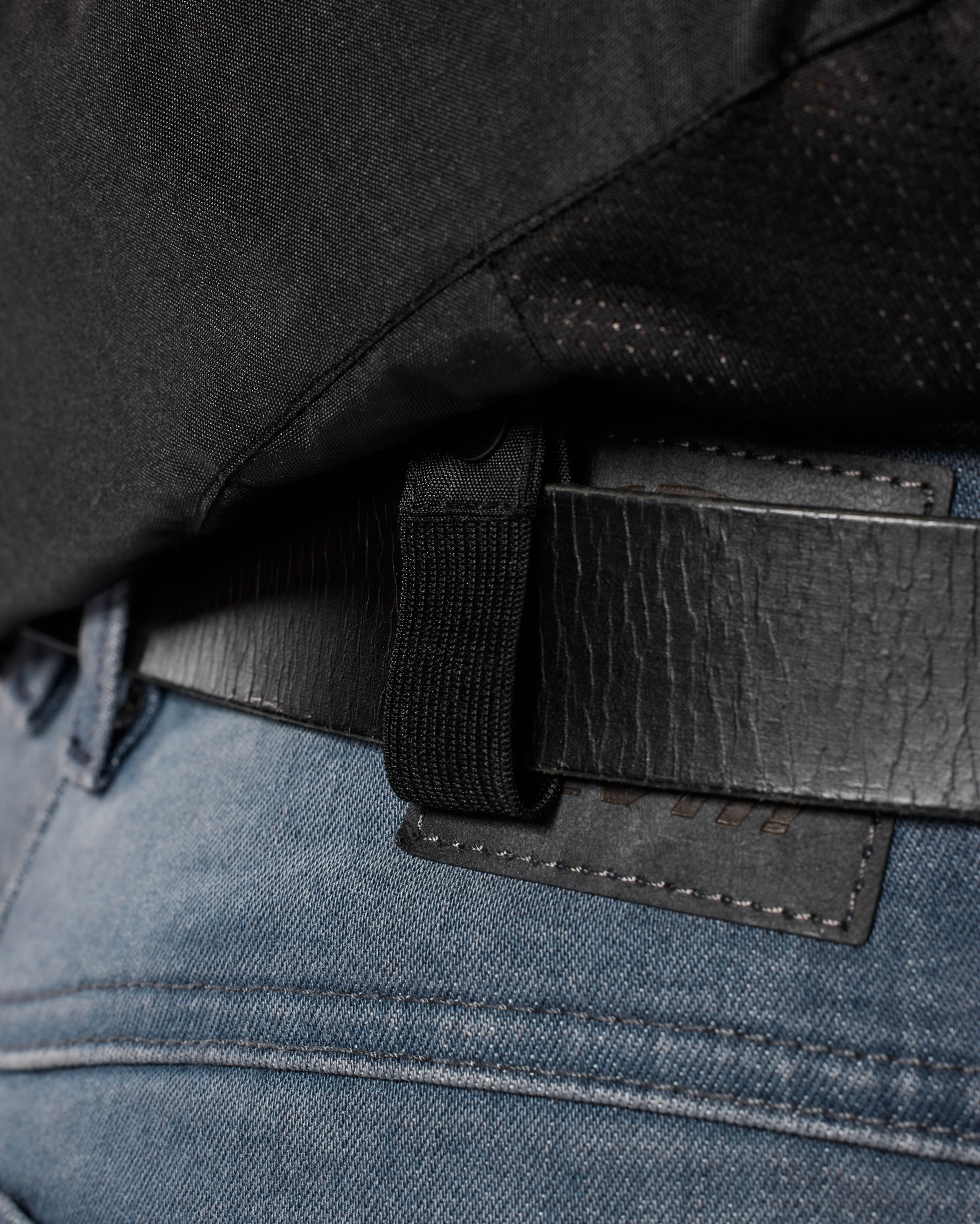 De Torque 3 H2O heeft geen verbindingsrits, wel dubbele belt loops. De combinatie met een goede motorjeansbroek lijkt een evidente keuze.