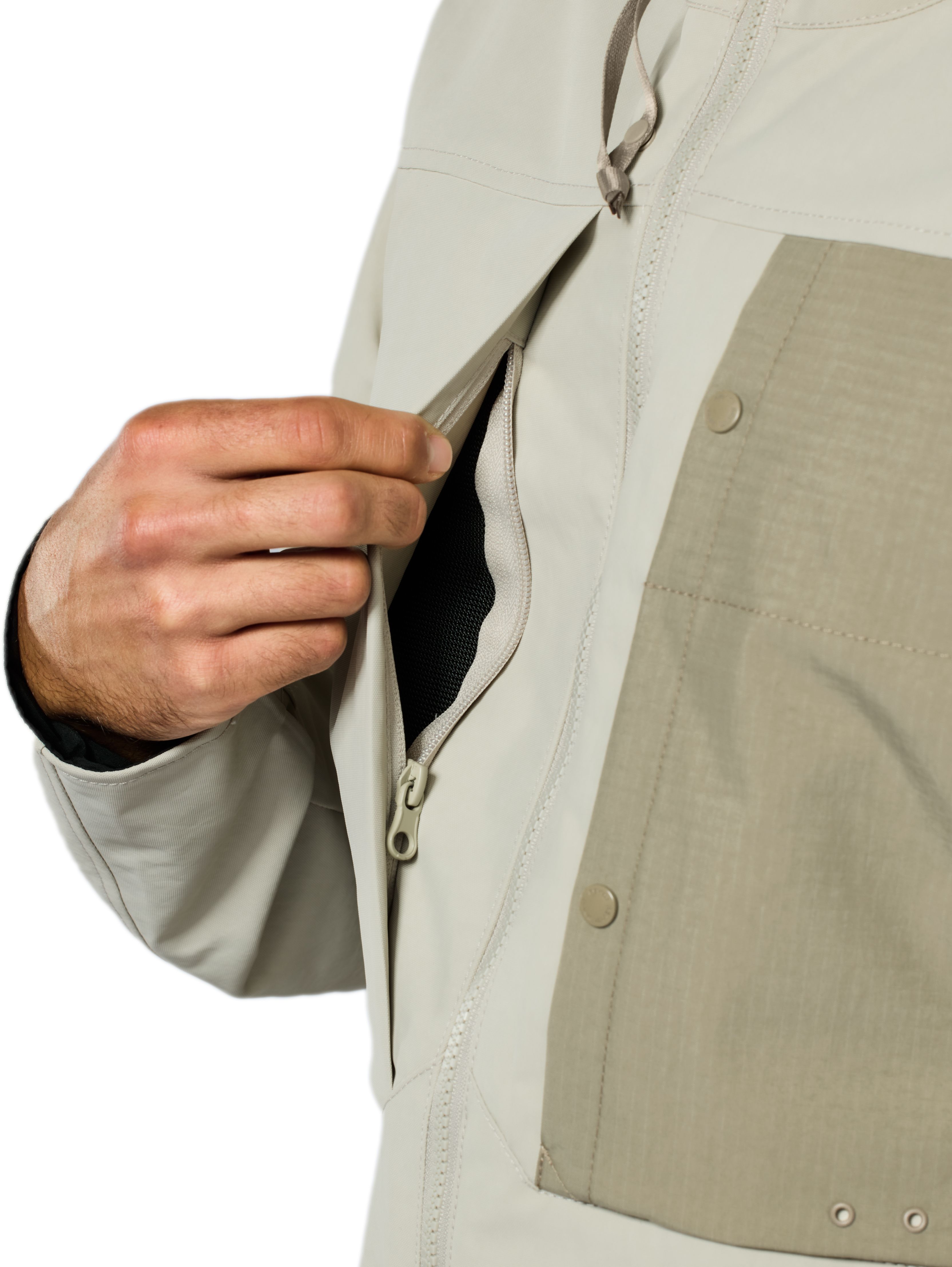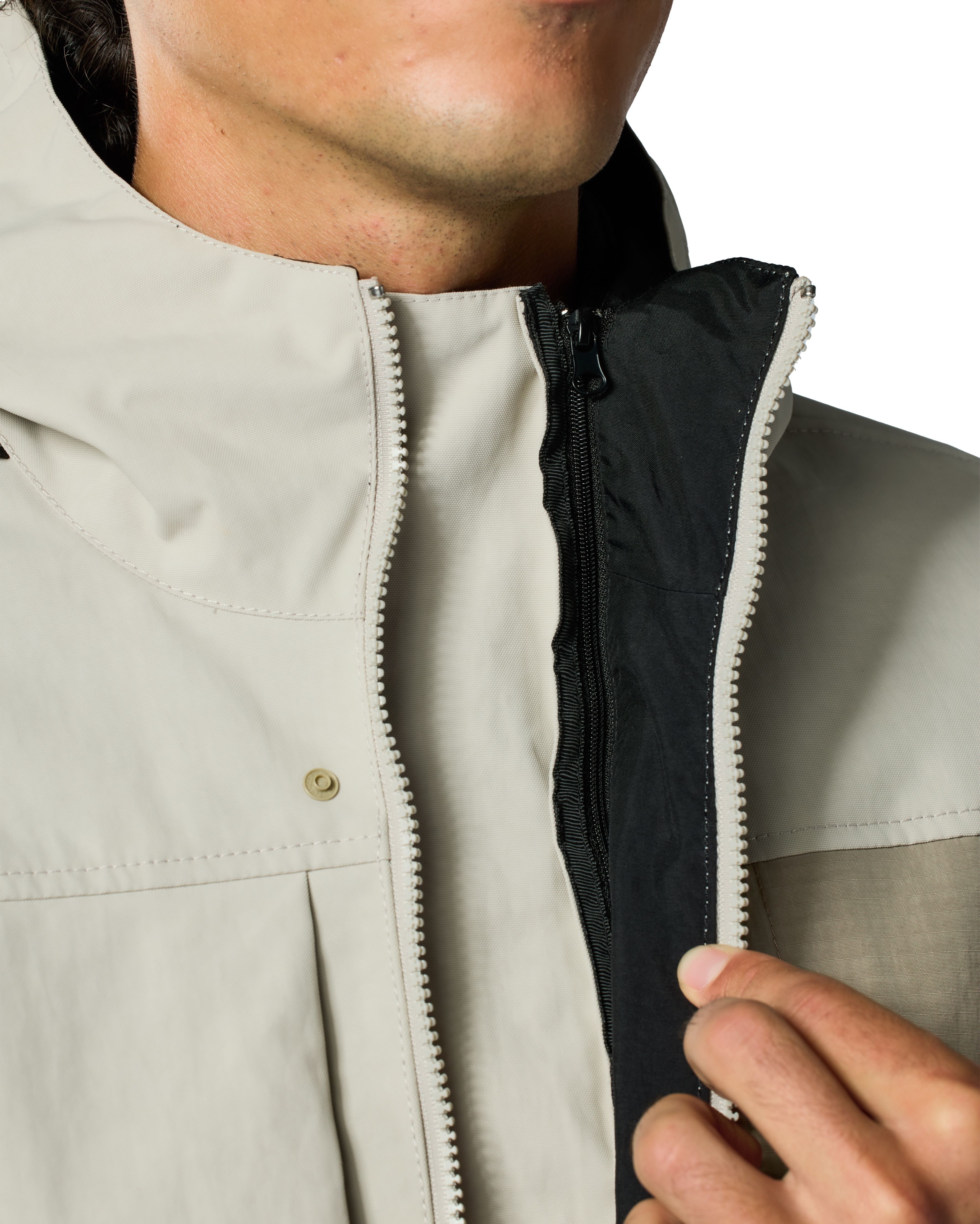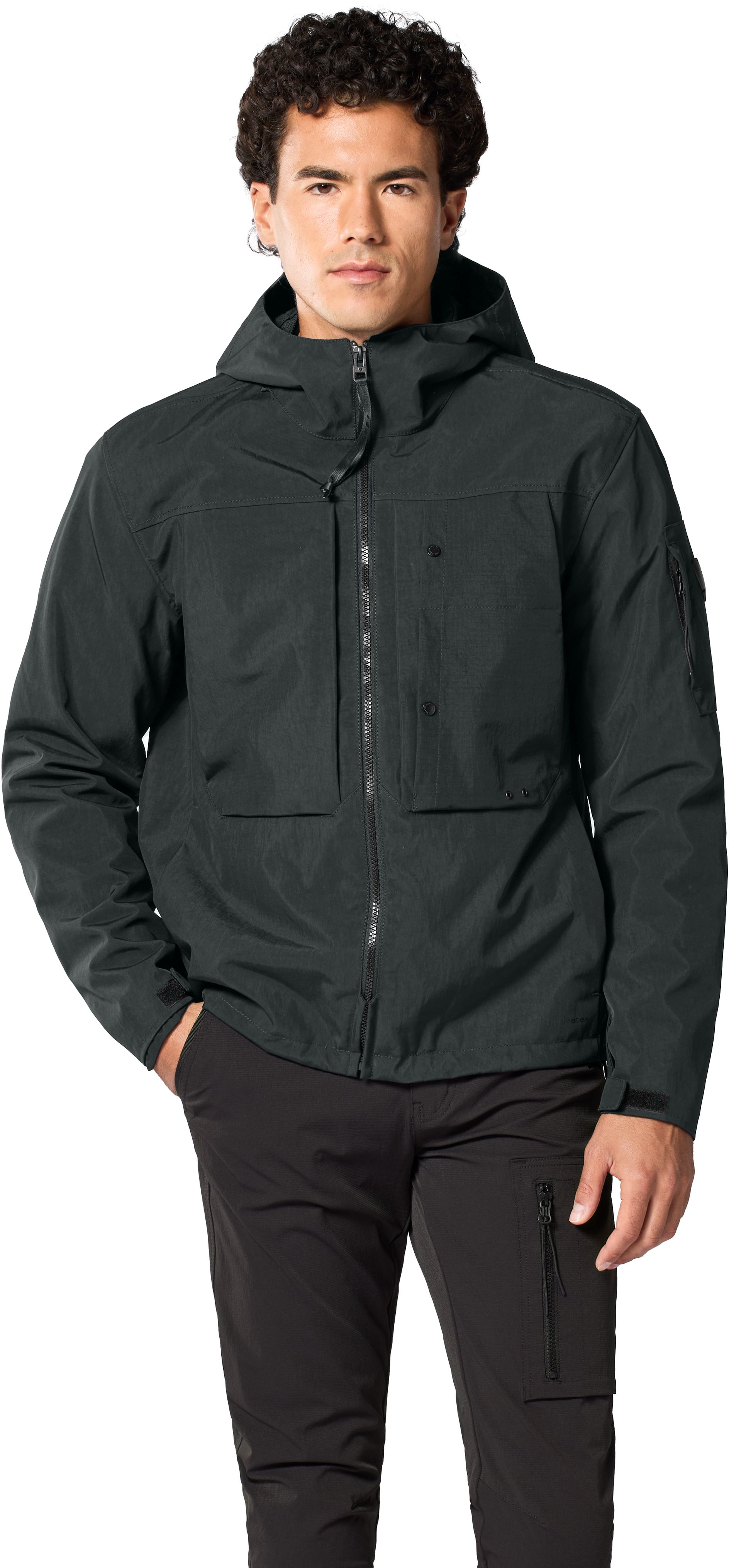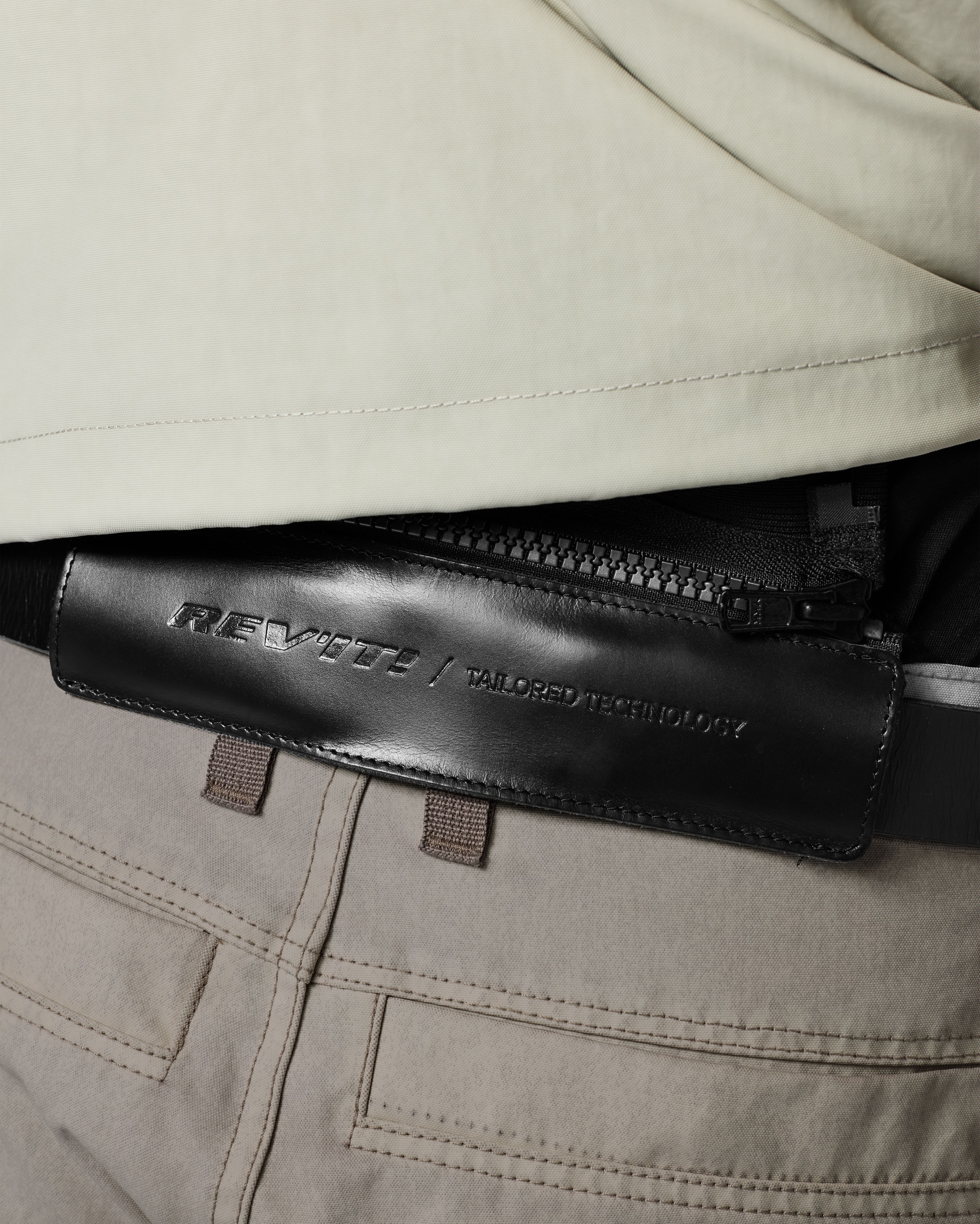 De moderne stadsbewoner voelt zich hierin perfect comfortabel. Extra opbergruimte komt in de vorm van een biceps-zak op de bovenarm. De binnenzak is – aldus REV’IT! – waterdicht. Zodra je afstapt, vormt de verstelbare capuchon een extra element. Met een drukknoop om hem vast te zetten wanneer je op twee wielen zit, is aan alles gedacht. De ‘wind & water’-catcher achter de centrale rits houdt op elk moment vocht en koude lucht waar ze horen: buiten de Danforth H2O en weg van het lichaam. Het waterdichte hydratex|Mesh G-liner-membraan is vast geïntegreerd, niet uitneembaar, maar ademt uitstekend dankzij de mesh-constructie.