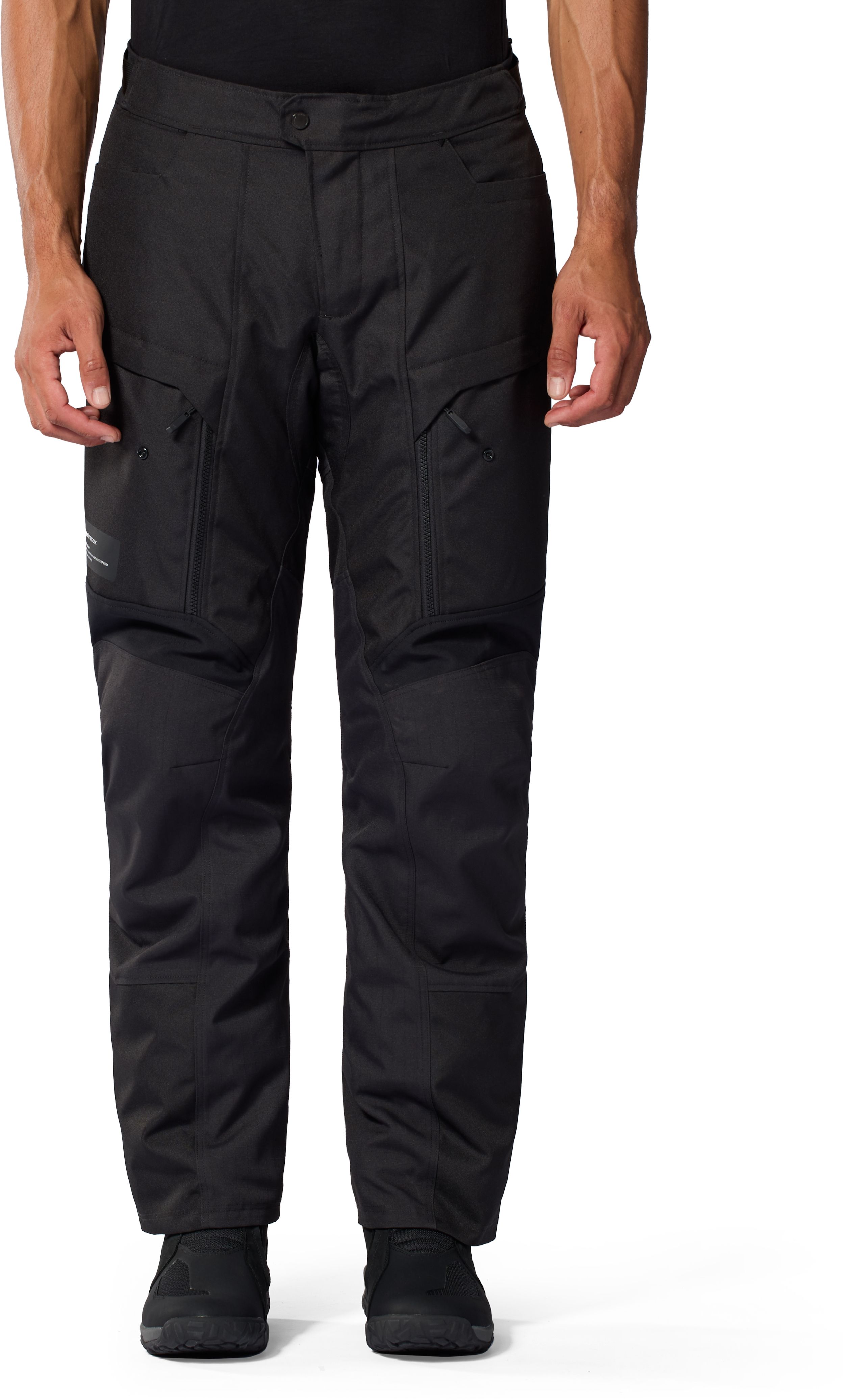 Onderaan openen de broekspijpen zich (eigenlijk worden ze wijder, want je opent ze niet letterlijk) om het instappen makkelijker te maken. Velcrostroken zorgen voor een perfect aanpasbare pasvorm, boven of in de motorlaars. Om de Outback 5 H2O bovenaan te sluiten gebruikt REV'IT! een stevige drukknoop en rits. Verstelmogelijkheden op de taille zijn aanwezig in de vorm van twee verstelbare gespen.