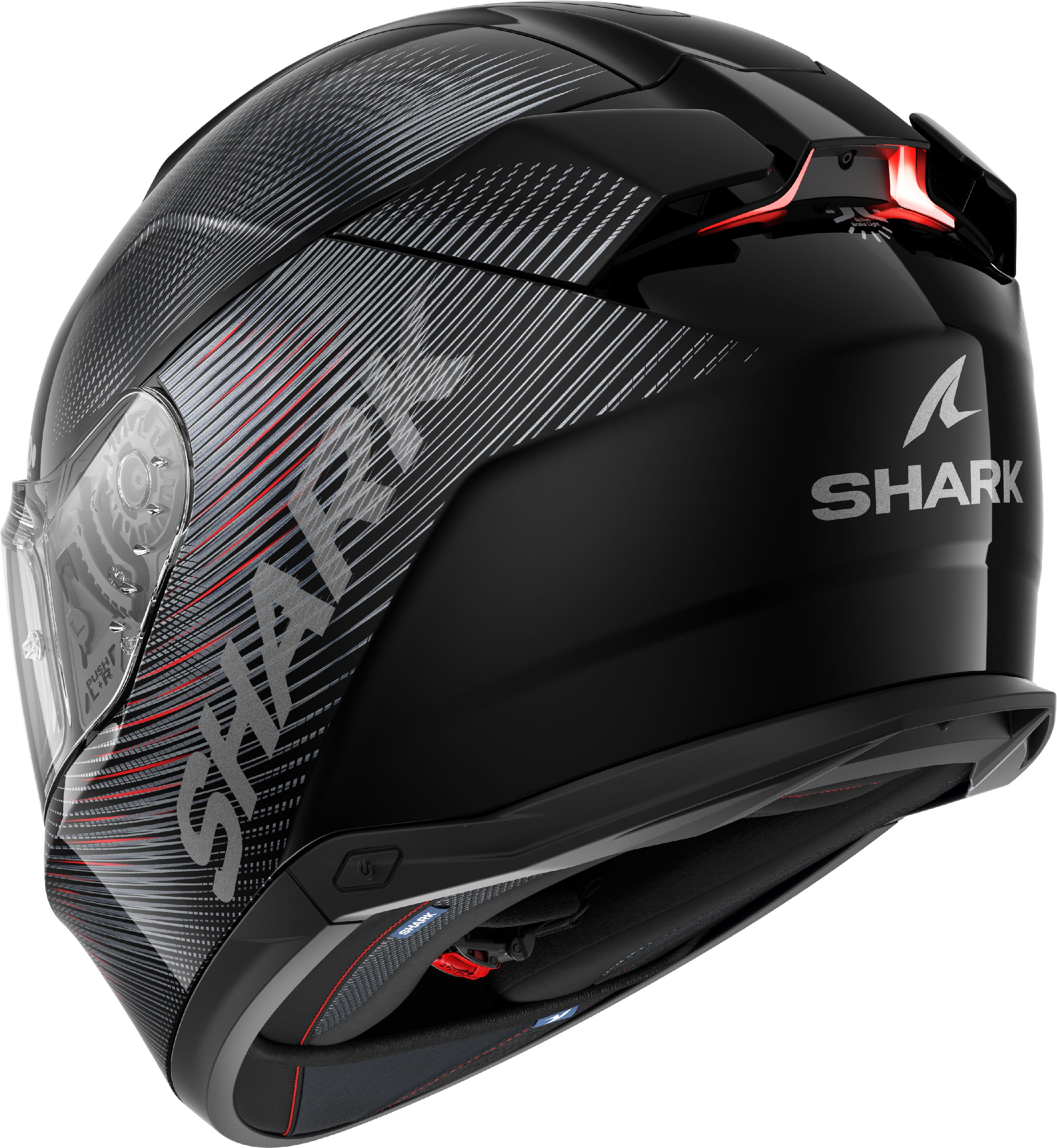 De Shark Skwal i3 weegt ondanks al zijn elektronische extra’s maar 1585 gram. De geïnjecteerde thermoplastic die als grondstof voor de buitenschaal dient, zit daar voor veel tussen. Of preciezer is het om te zeggen: twee high-impact lexan™ injected motorhelmschalen in polycarbonaat bevatten de zes beschikbare motorhelmmaten, en dat zit er natuurlijk voor nog veel meer tussen.