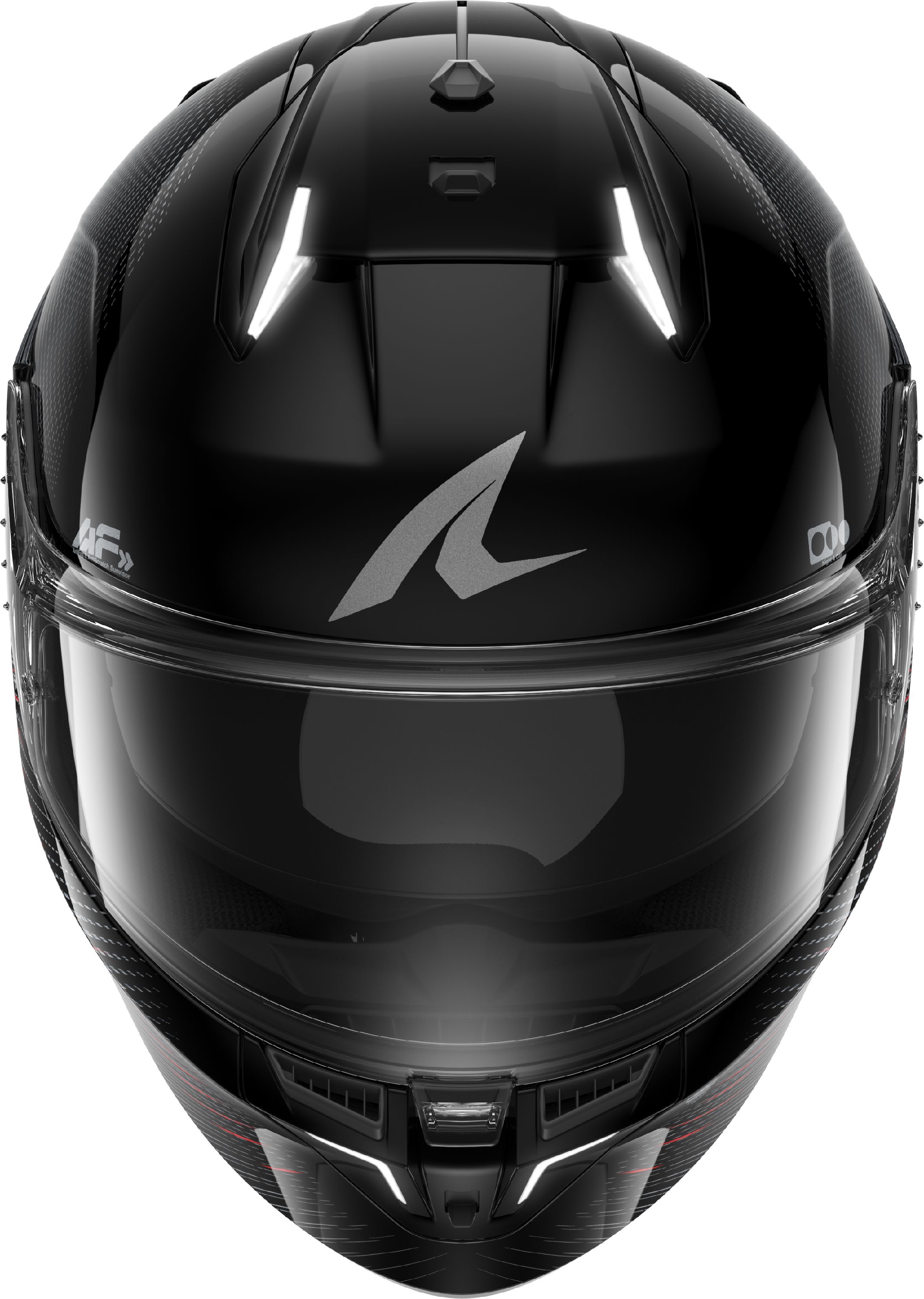 De witte ledverlichting zit nog altijd geïntegreerd in de kin- en topventilatie en rood is de kleurkeuze achteraan de motorhelm. Dat is niet lukraak, want achteraan fungeren de rode lampjes als actief remlicht. Het is te zeggen: je kan ze vast laten branden of knipperen (dat was in eerdere versies ook al zo) en nu ligt daar – als extra laag – een nieuw ‘slim remlicht’ bovenop. Ongeacht hoe de lampjes branden, bij een noodremming vestigen ze extra aandacht op je rijgedrag: door te knipperen of harder te knipperen, al naargelang de initiële situatie.