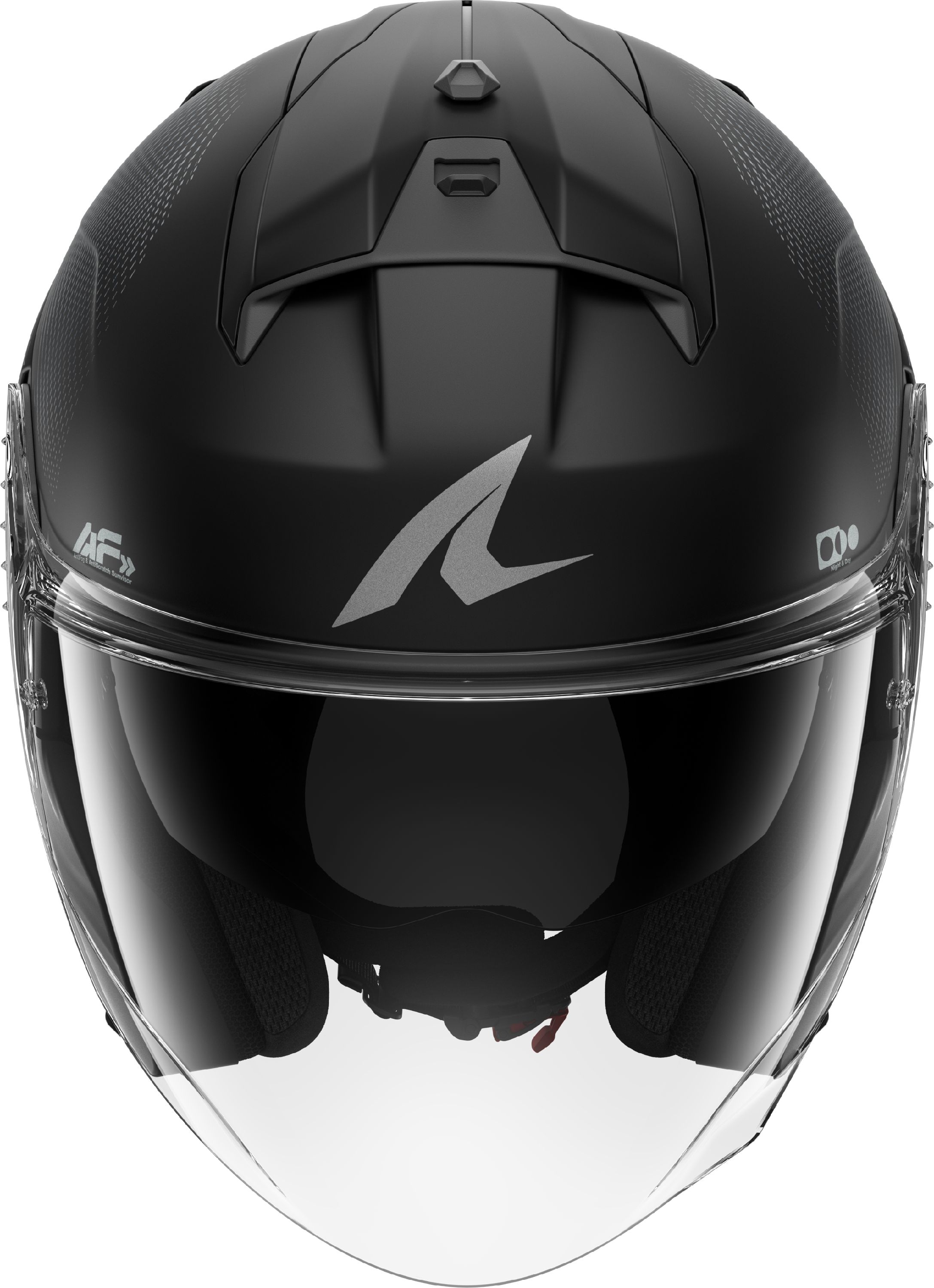 Het transparante vizier is speciaal ontworpen om je gezichtsveld te maximaliseren. Breed en voldoende lang dus, met een volledig en ongehinderd beeld. Visuele vervormingen worden vermeden door de variabele dikte van het transparante vizier, dat meteen ook anti-kras behandeld is.
