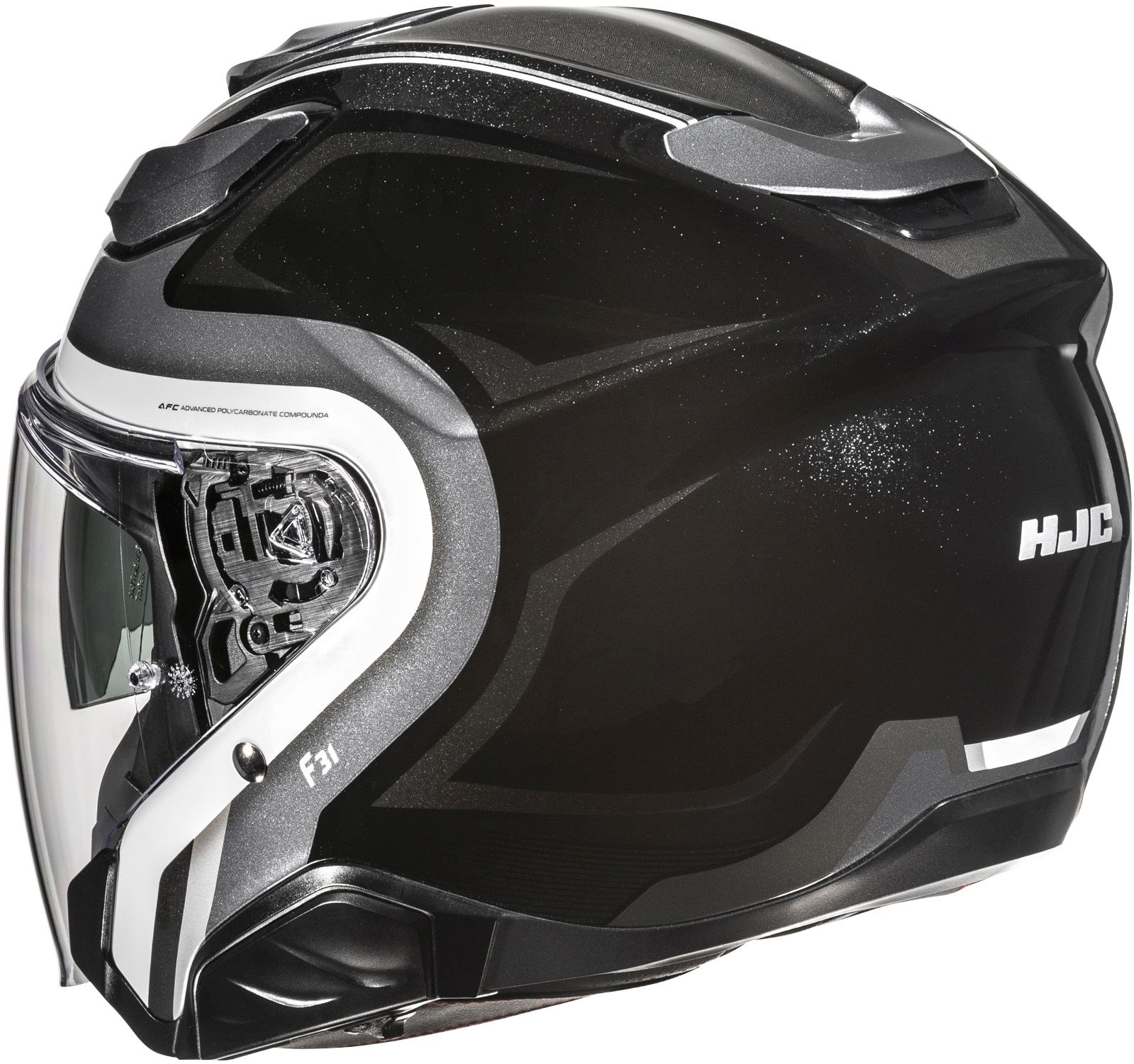 Als een jethelm ‘een potje’ is, is de maxi-jet een snelkookpan met thermometer, zelfsluitend deksel en luchtdrukventiel. De F31 leunt in elk geval dichter aan bij dat laatste. De F31 is ECE R22.06-gecertificeerd en voorbereid om er de nieuwste generatie Smart HJC-intercomtoestellen (11B, 21B en 50B) in te monteren. Tel daar ook nog het nieuwe geïntegreerde zonnevizier bij en wellicht is dit zelfs nog een klasse beter dan die snelkookpan.