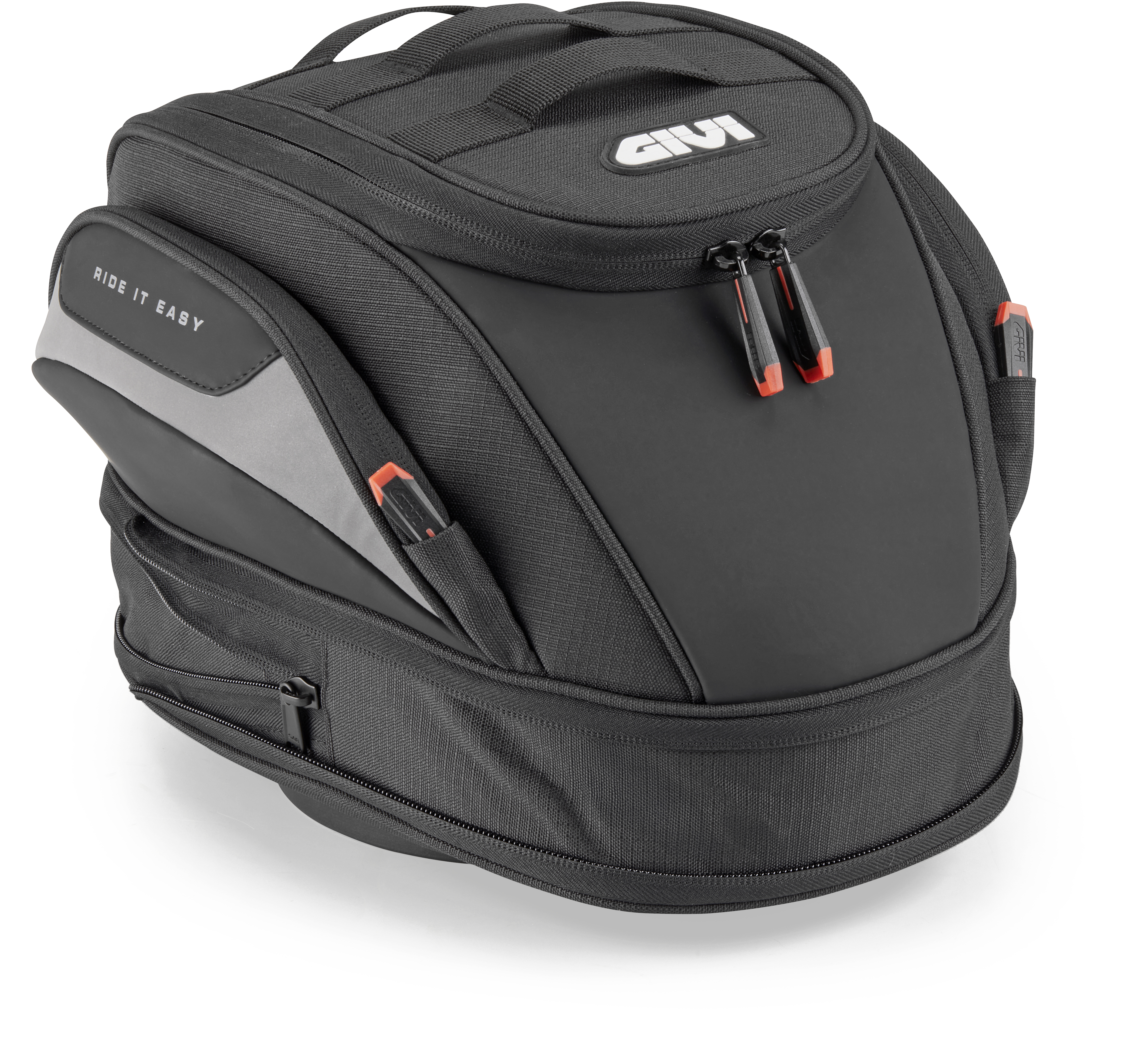 De GIVI EASY03 Tanklock is een tanktas van 12 tot (opengeritst) 16 liter die je op de motorfiets bevestigt met het Tanklock-systeem. Deze motortas is ontworpen voor dagelijks gebruik en motortoertochten, en combineert praktische opbergruimte met functionele details.