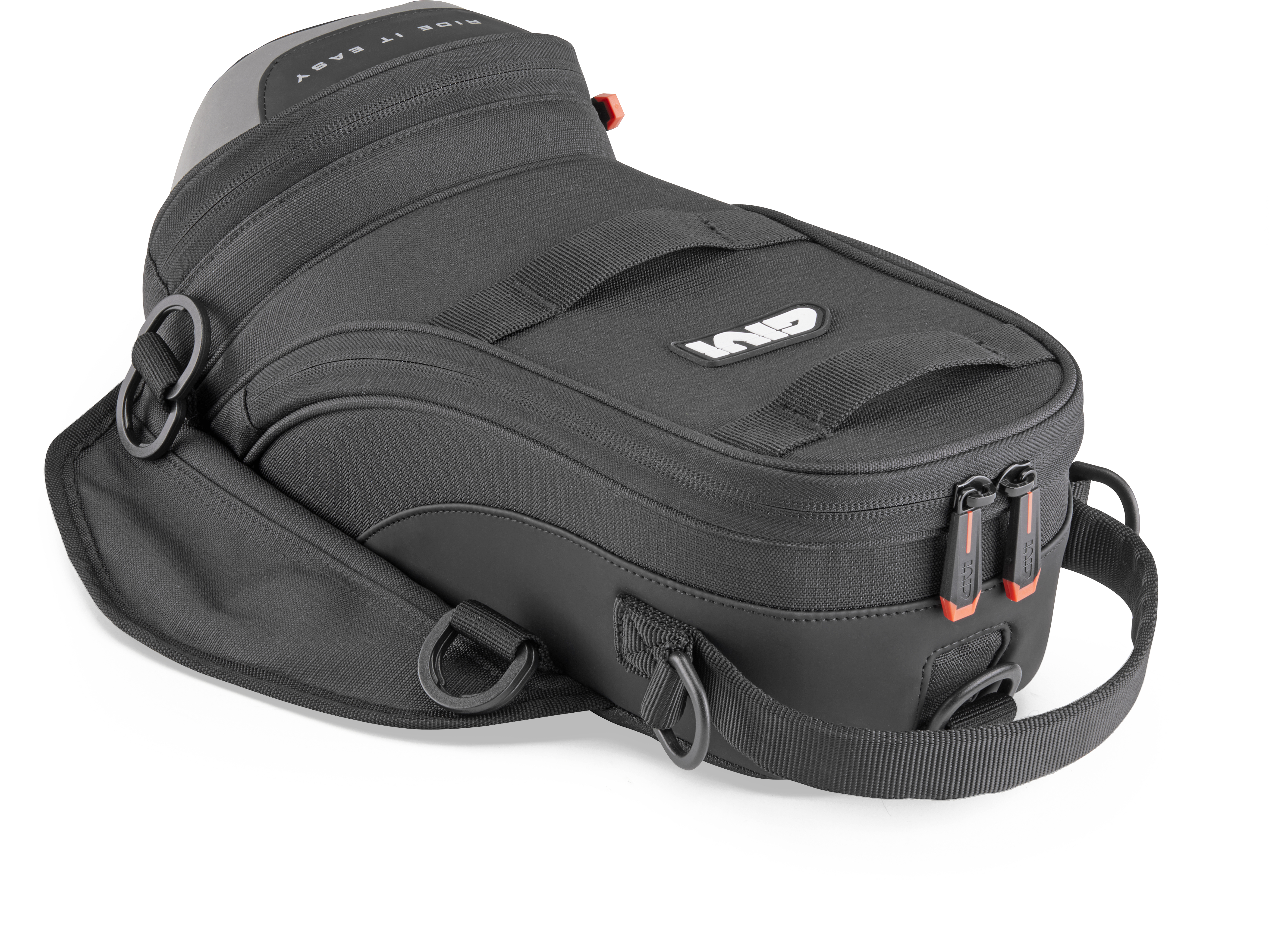 De GIVI EASY02 is een compacte motortanktas van 6 liter die je bevestigt met twee geïntegreerde magneten óf met de meegeleverde riemen. Beide opties houden de tanktas stabiel op zijn plaats, en maken de EASY02 geschikt voor zowel een metalen tank als een tank in kunststof.