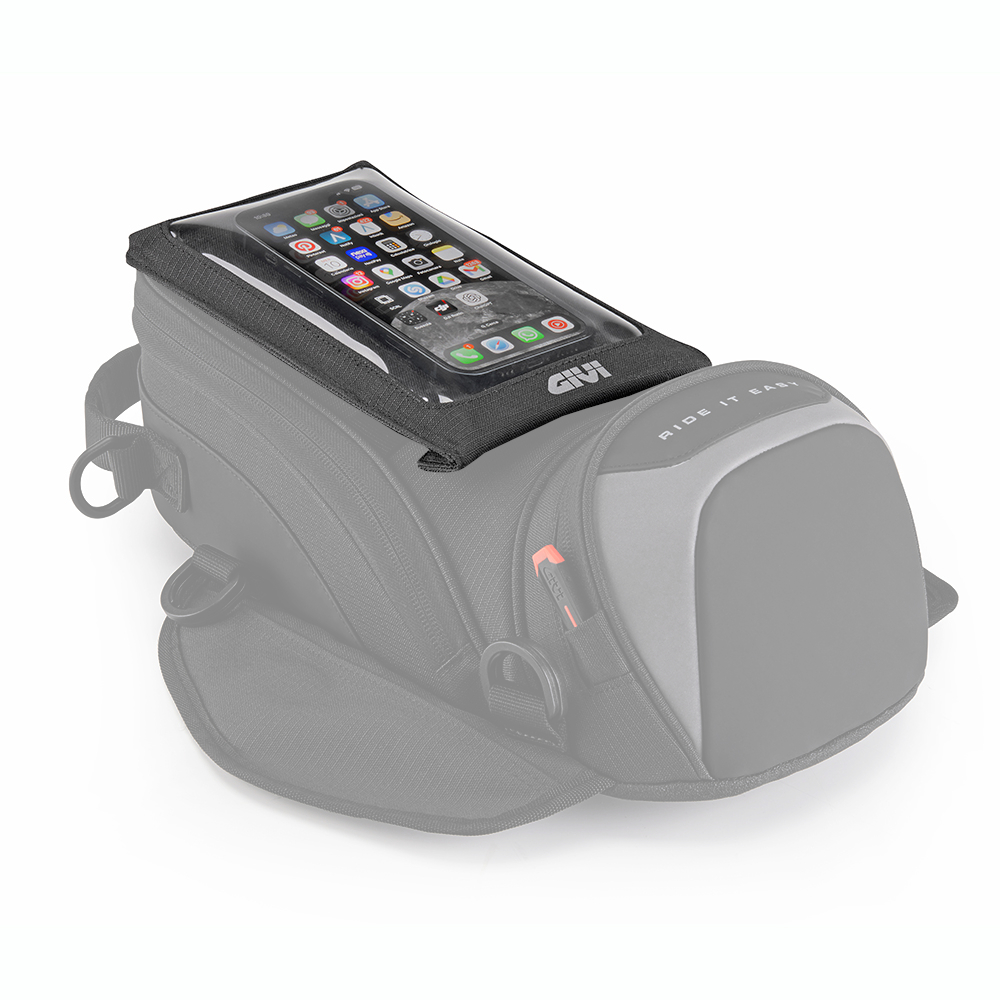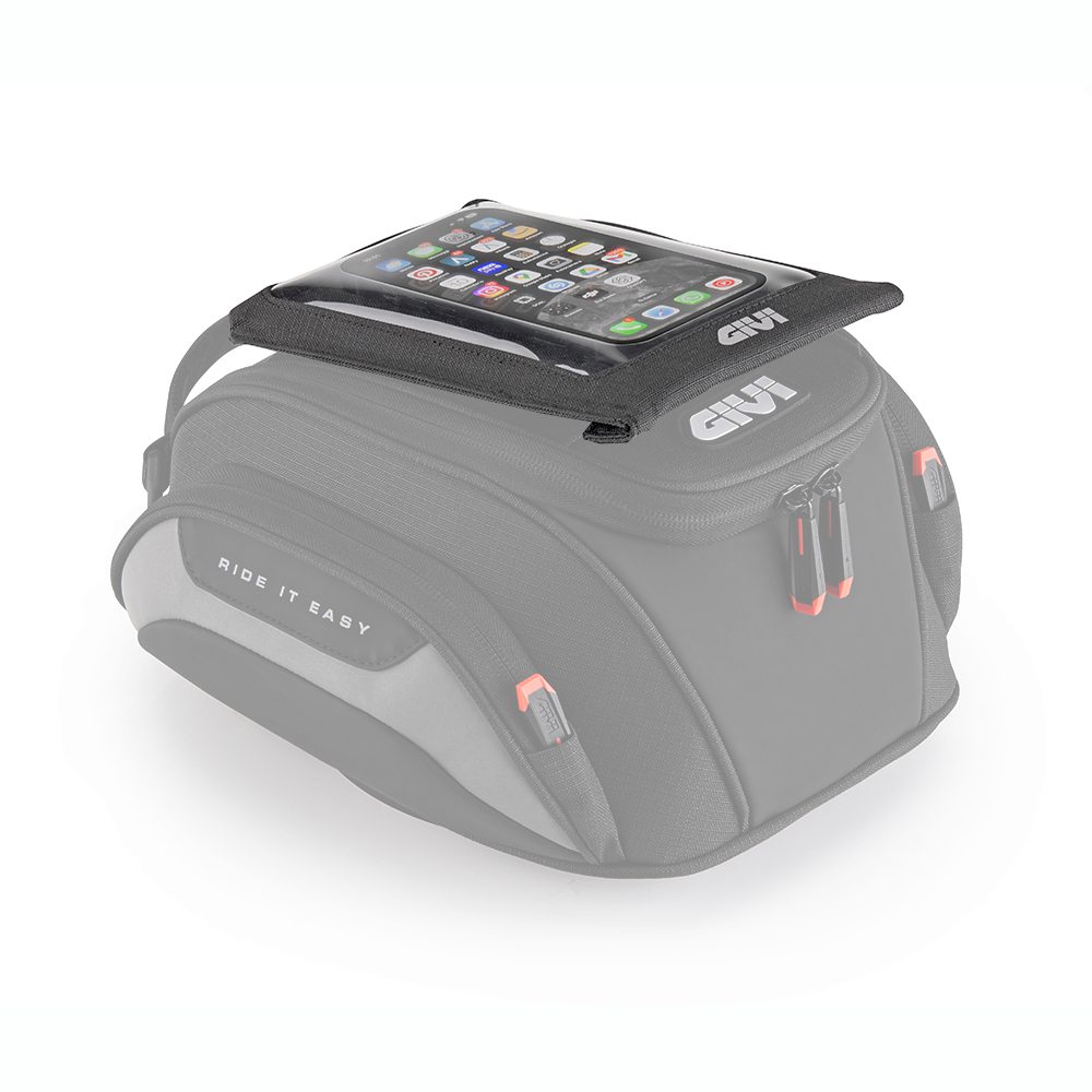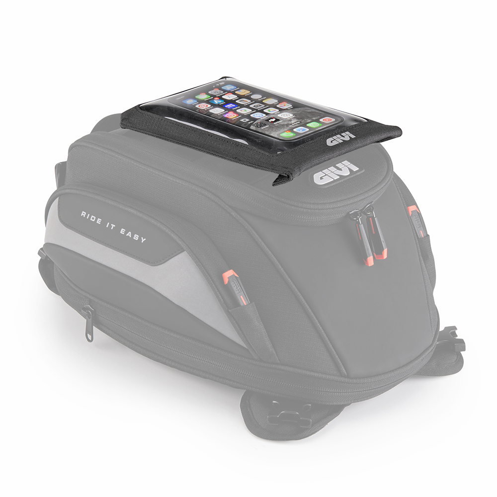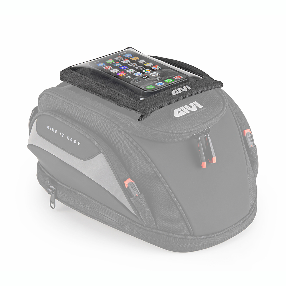 Deze telefoonhouder van GIVI bevestig je met verstevigde inzetstukken vlot op een heel aantal Easy-T tanktassen (modellen EASY01 t/m EASY06). Handig als je tijdens het rijden je navigatie wil checken of muziek wil bedienen zonder telkens te stoppen. Het transparante PVC-scherm reageert op aanraking, dus je smartphone blijft gewoon in de telefoonhouder zitten terwijl je alles bedient.