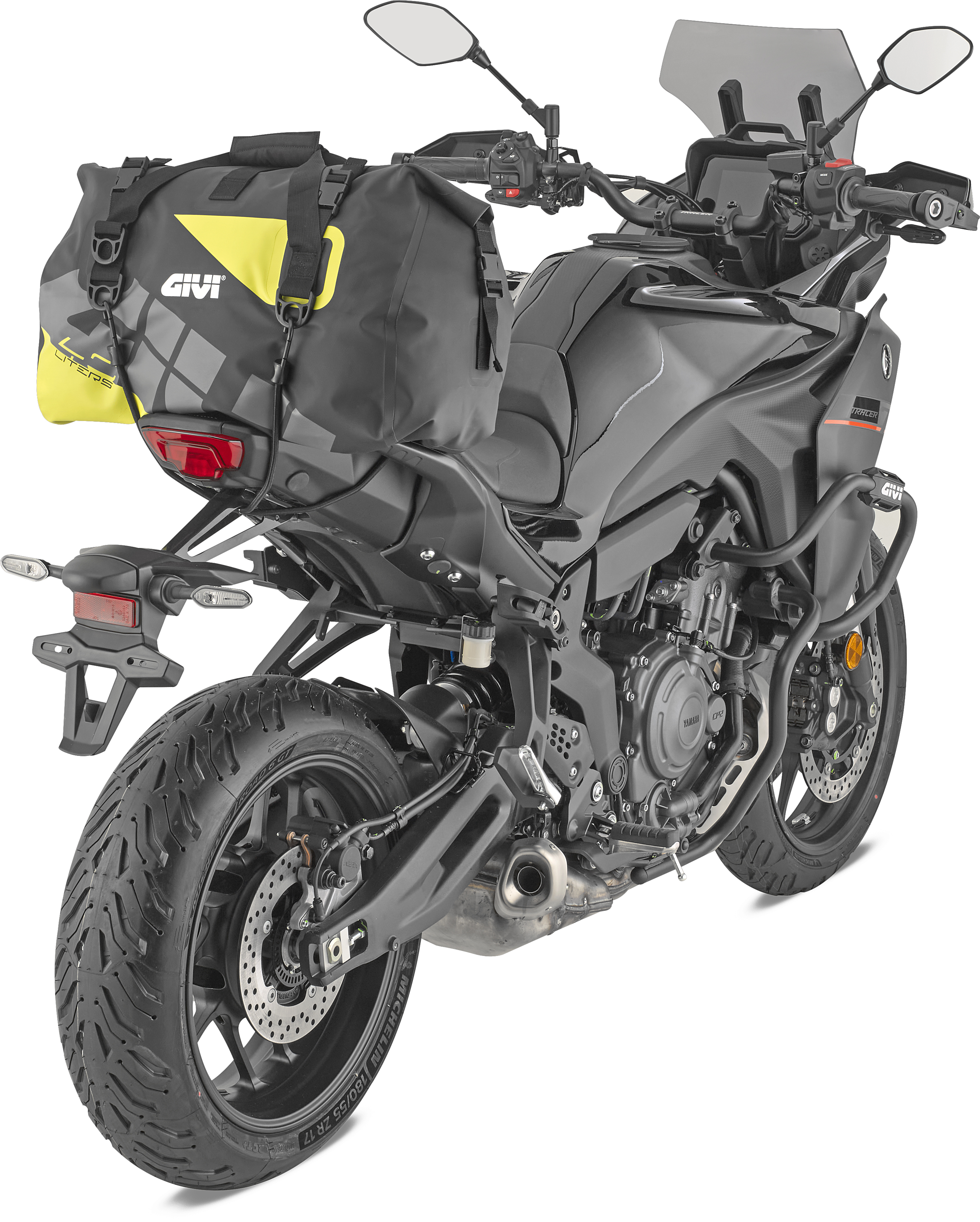 De Givi 40-litertas wordt geleverd met twee snelbinders met plastic haken voor een veilige montage.