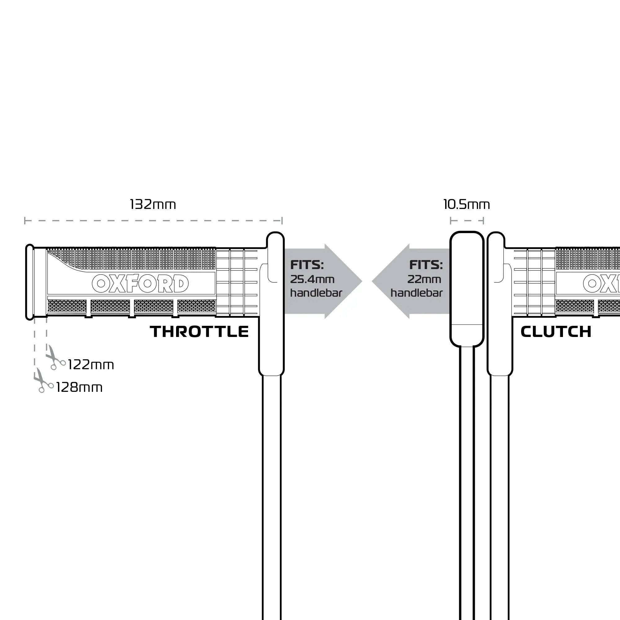 De handvaten passen op 22mm-sturen en zijn aan de uiteinden open en inkortbaar. Dat laat toe om bar-end accessoires zoals spiegels of stuurgewichten te monteren.