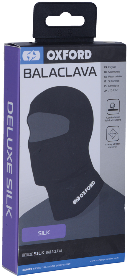 De Oxford Deluxe Silky Balaclava is een motorbivakmuts van 100% zijde. Je draagt dit als extra laag onder je motorhelm. Dit is perfect voor koude dagen of lange ritten waarbij je hoofd, oren en nek wat extra warmte kunnen gebruiken, zonder bulk of gewicht toe te voegen.