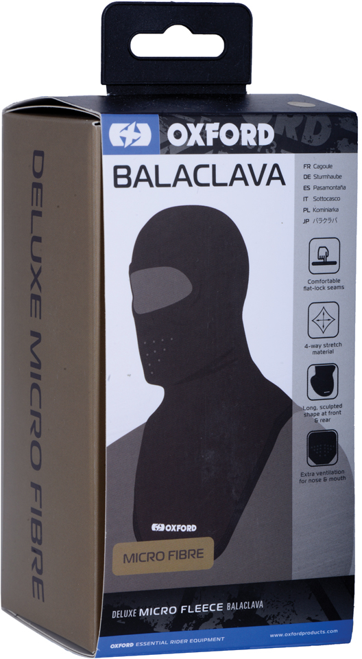 De Oxford Deluxe Microvezel Balaclava is minder zwaar gevoerd dan de ‘microfleece’-versie.
