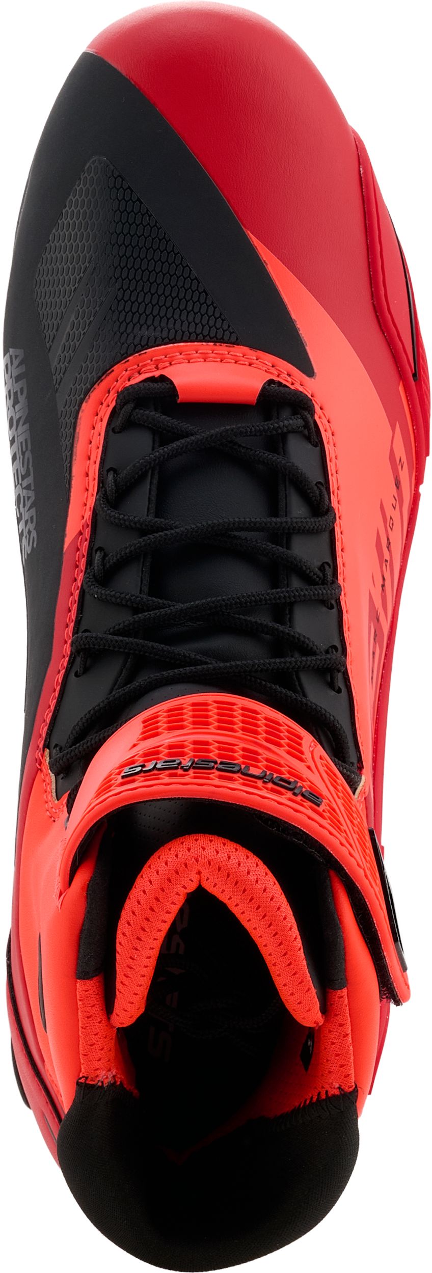 De gelaste, geavanceerde microvezelpanelen die de buitenzijde vormen, koppelen meteen het uitzicht aan prestaties. Een uitsparing (in zacht textiel) ter hoogte van de achillespees voor beweeglijkheid. Ondanks dat, veel ondersteuning en padding op de enkel. Een gedetailleerde, niet al te uitgesproken TPR-teenslider. Een nieuw ontworpen, uitwendige TPR-hielslider. De asymmetrische teen die – ook zonder uitgesproken schakelversteviging – toelaat stevig doorheen de versnellingen te gaan. De 3D meshvoering die voor een hoog ademend vermogen zorgt, maar ook voor een licht gewicht. De anti-slip microsuède op de hiel, en de vulling rond de enkel en in de tong van de motorschoen mogen we niet vergeten.