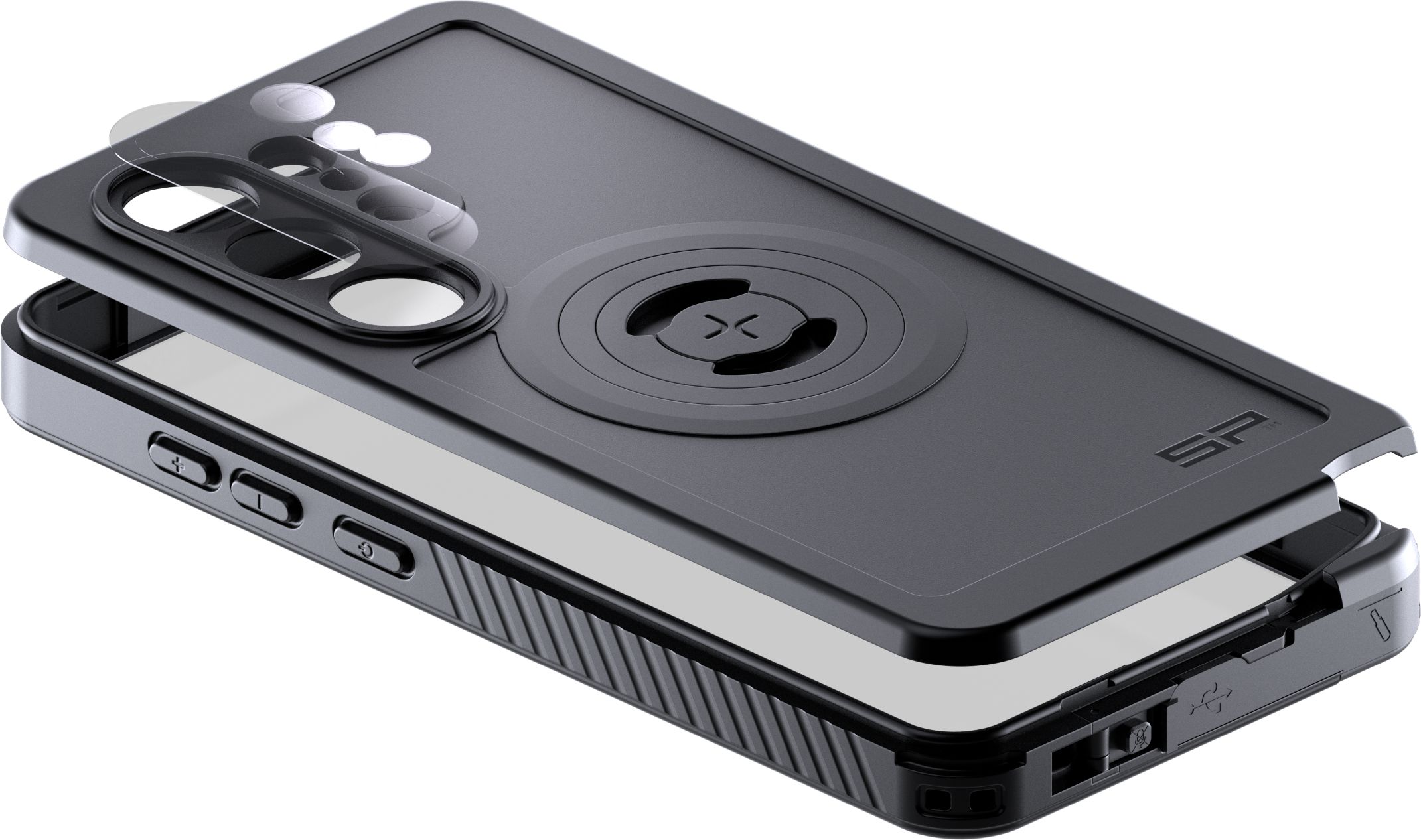 Eenmaal de juiste Phone Case Xtreme SPC+ gekozen, wijst het zichzelf uit: weer en wind, op en neer, modder, zand, water … er is weinig waartegen de Phone Case Xtreme SPC+ niet bestand is. Dit houdt je smartphone veilig en de ‘gewone’, praktische functies blijven ondertussen behouden: met het geïntegreerde ‘twist-to-lock’-mechanisme bevestig je de smartphone op elke SP Connect-houder. Ook de magnetische MagSafe-compatibel® waarmee je draadloos oplaadt.